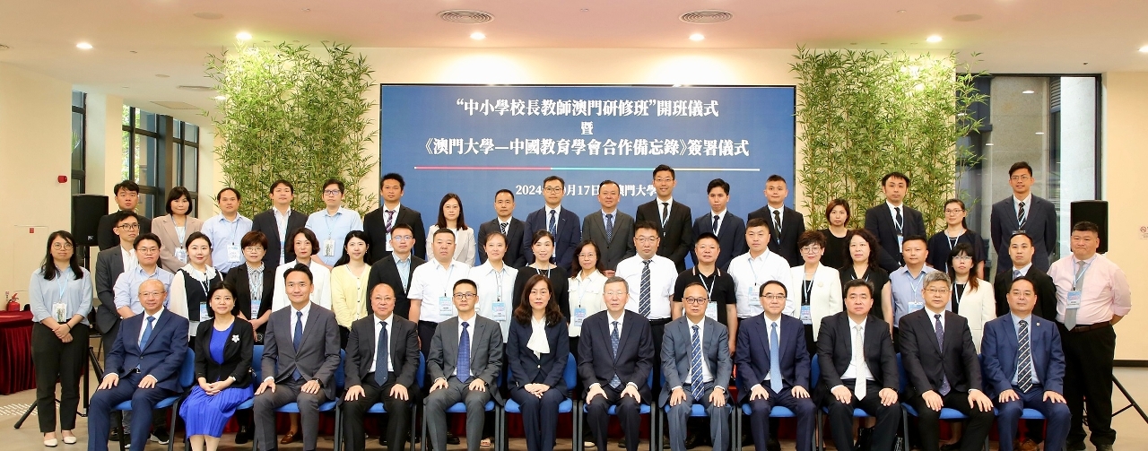 澳門大學與中國教育學會今(17)日舉行第一屆“中小學校長教師澳門研修班”開班儀式暨《澳門大學—中國教育學會合作備忘錄》簽署儀式,透過研修班和各項合作提升澳門與內地建校辦學的經驗交流,進一步提高中小學校長和教師的專業水平與創新能力,培養新時代的教育家。