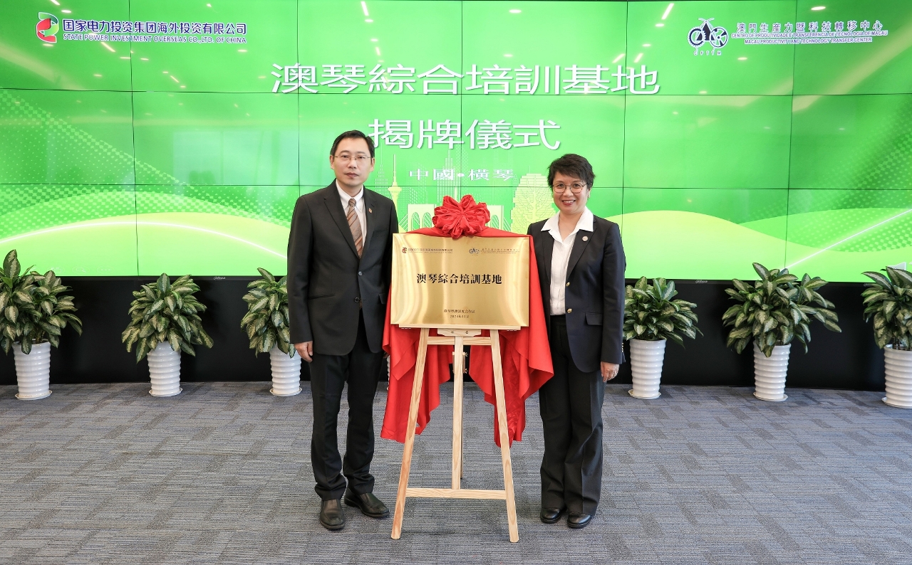 澳門生產力暨科技轉移中心與國家電力投資集團海外投資有限公司(國家電投),於11月7日在橫琴粵澳深度合作區“澳琴綜合培訓基地”進行揭牌儀式,為粵港澳大灣區的專業人才培養和經濟發展注入新活力。