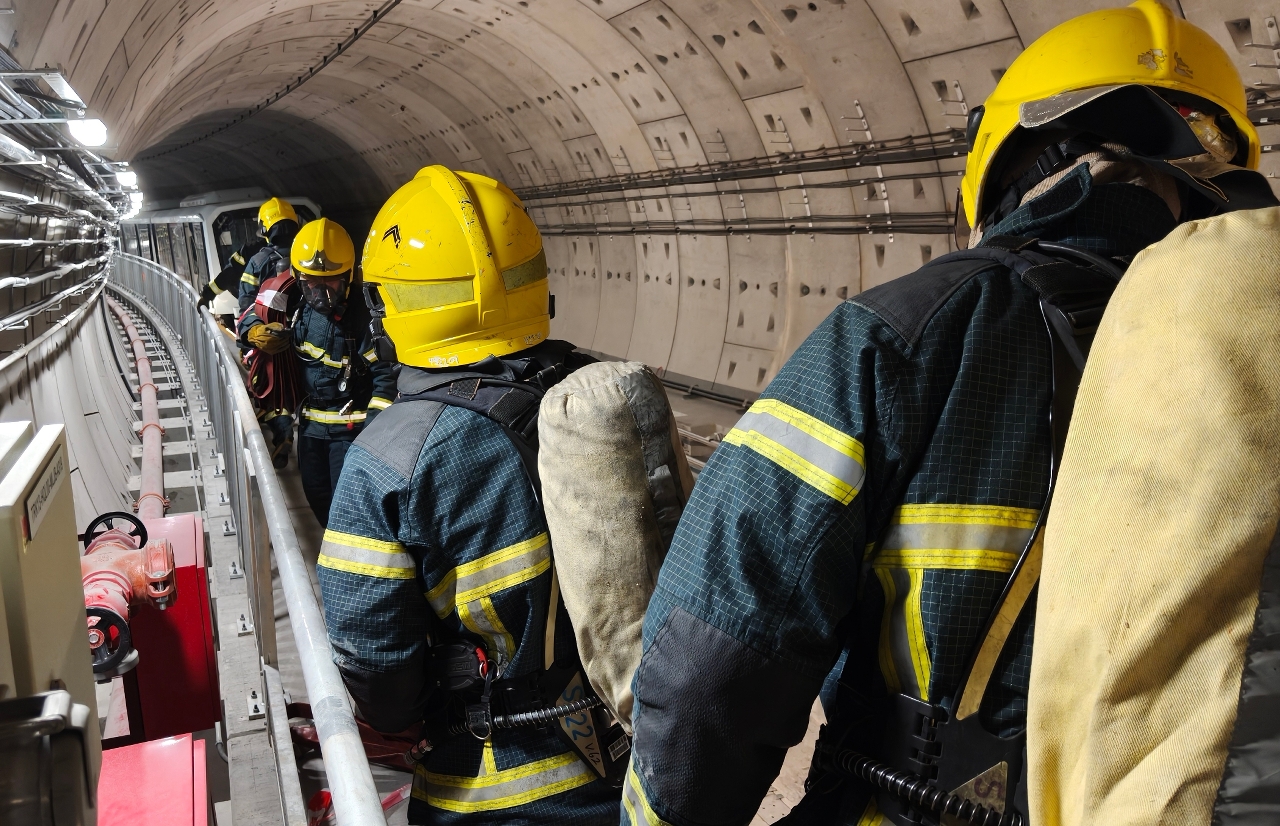 澳門消防局救援人員到達橫琴口岸站月台後,隨即派員進入管道往橫琴側疏散井方向進行搜救,直至到達起火列車位置。