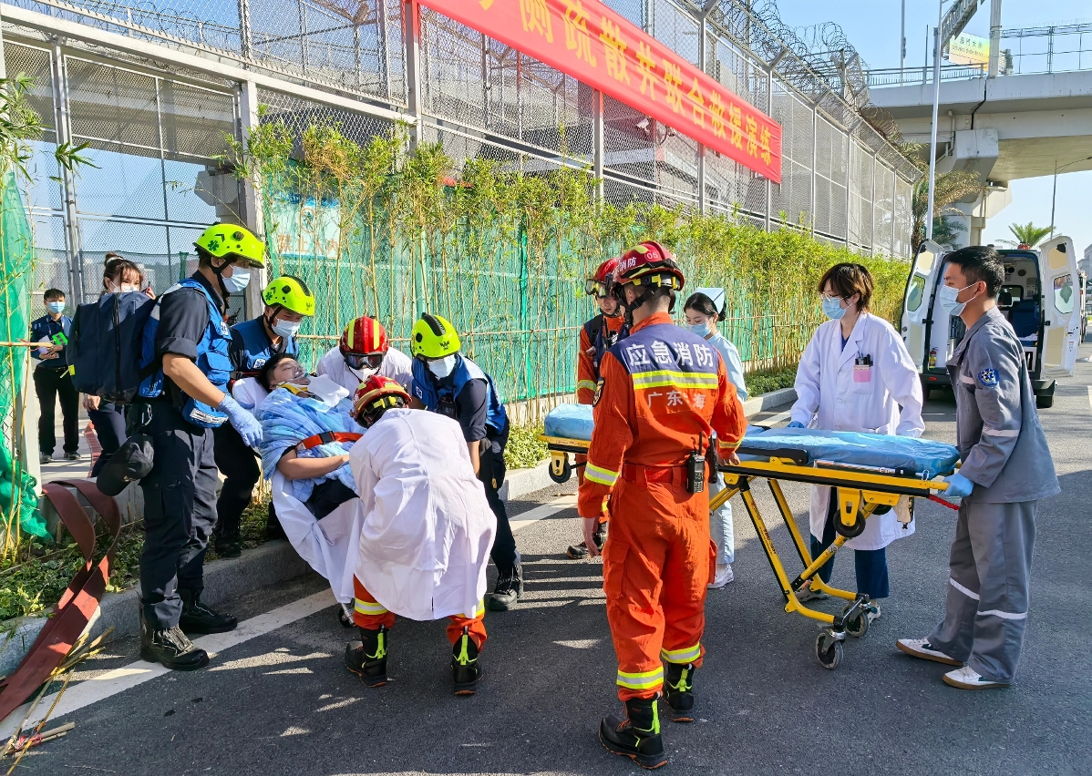 橫琴消防救援大隊到達橫琴側疏散井後破拆圍網,為傷者提供院前護理及前期現場秩序管控。澳門消防局跨境救援車輛及人員隨後到場,立即將2名傷者(1名手臂骨折、1名吸入濃煙不適)模擬送往澳方醫院治理,以及派員進入起火列車管道進行搜救、滅火及排煙工作。由於另外1名昏迷傷者情況緊急,由“合作區”衛生部門送往當地醫院救治,而不需送院人員則由“合作區”相關部門協助運送到橫琴口岸隨車人員驗放廳,兩地邊檢部門開設專道核實出入境記錄情況,辦理通關手續後返回澳門。