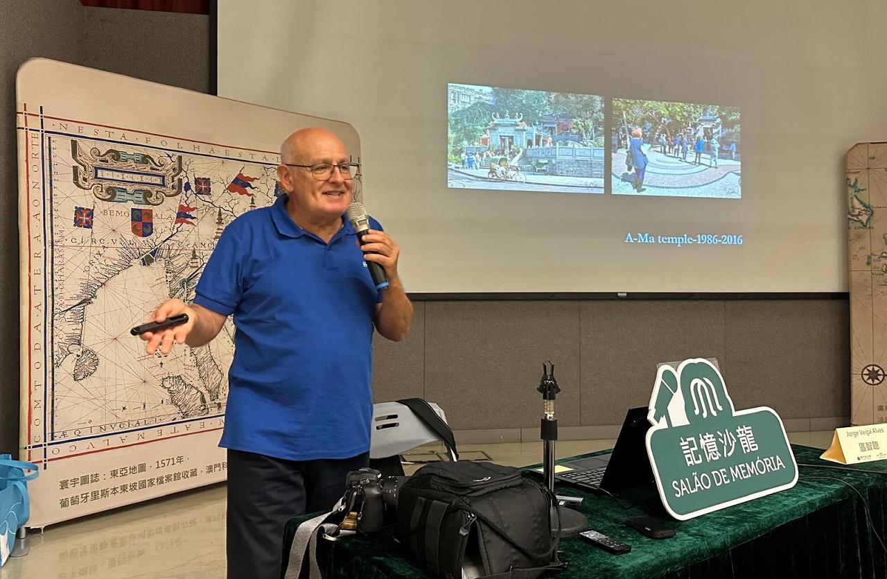 首場沙龍由葡籍攝影師Jorge Veiga Alves主講“Searching for Macau”,他與聽眾分享了上世紀80年代後半期至90年代初他在澳門工作的經歷,以及如何將膠片相片轉換為數碼相片的過程。講座中他從衣食住行等不同生活模式面貌視角,透過相片展現了80年代與回歸後澳門的不同景象,並從景物中探尋澳門的中西文化特色,他指,這些具有時代特徵的照片在網絡上分享後,得到澳門本地居民的關注和評論,令他倍感欣慰。他憶起每當拍攝街頭人物和風景時,被攝者的友好和寬容的態度令他難忘。講座期間多位聽眾積極提問,氣氛熱絡。