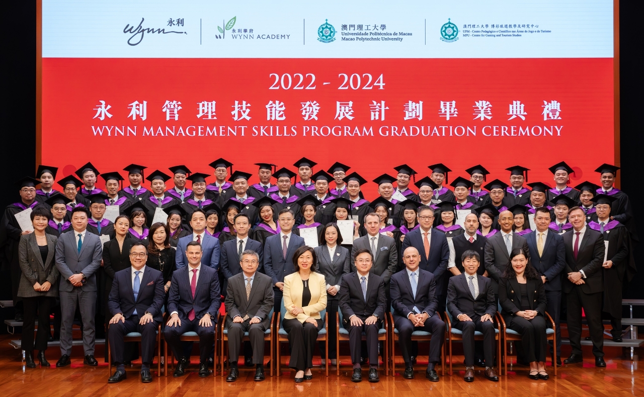 為助力澳門世界旅遊休閒中心建設,澳門理工大學與永利澳門有限公司合辦永利管理技能發展計劃,內容涵蓋國家與區域產業發展、數字金融走勢、高新科技於旅遊娛樂場景應用態勢以及多領域合作的綜合渡假村管理模式等。永利管理技能發展計劃畢業典禮於澳理大禮堂舉行,隆重熱鬧。