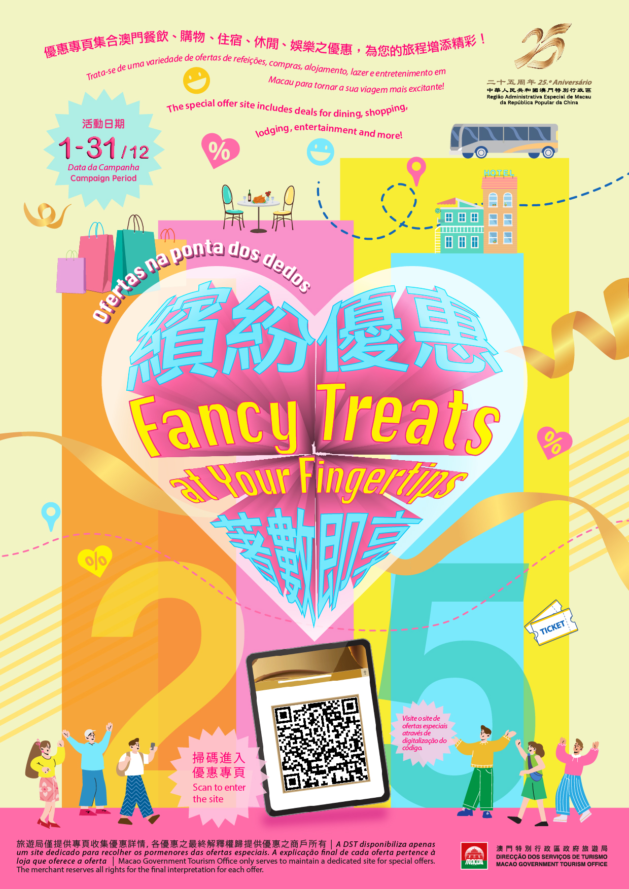 “繽紛優惠 著數即享”平台專頁於12月1至31日期間上線,網址為https://macao25offer.macaotourism.gov.mo。