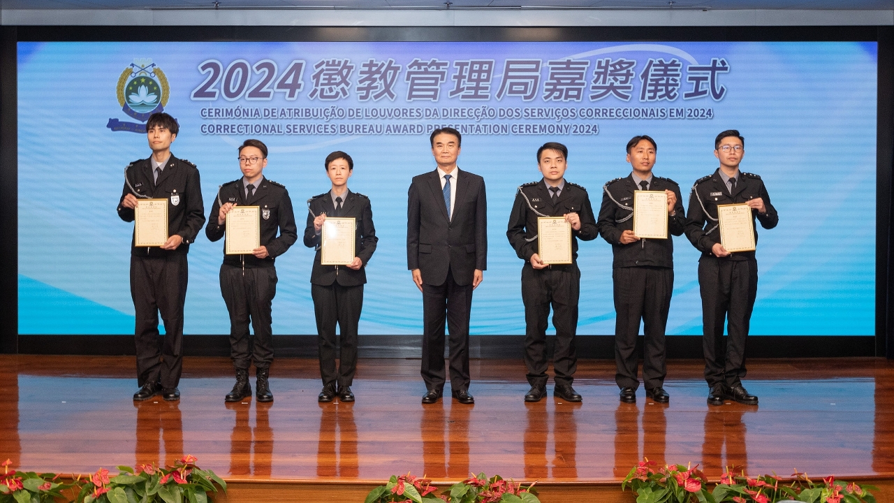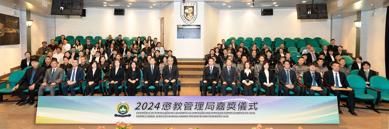 於12月2日下午,懲教管理局假澳門保安部隊高等學校禮堂舉行2024年度嘉獎儀式,以表彰本年度工作表現優秀的個人和團隊,以及向榮休和長期服務的人員致送紀念章,藉此對他們的貢獻給予充分肯定,並激勵士氣,增強團隊凝聚力,同時對本年度的工作進行總結。嘉獎儀式由保安司司長黃少澤主禮。
