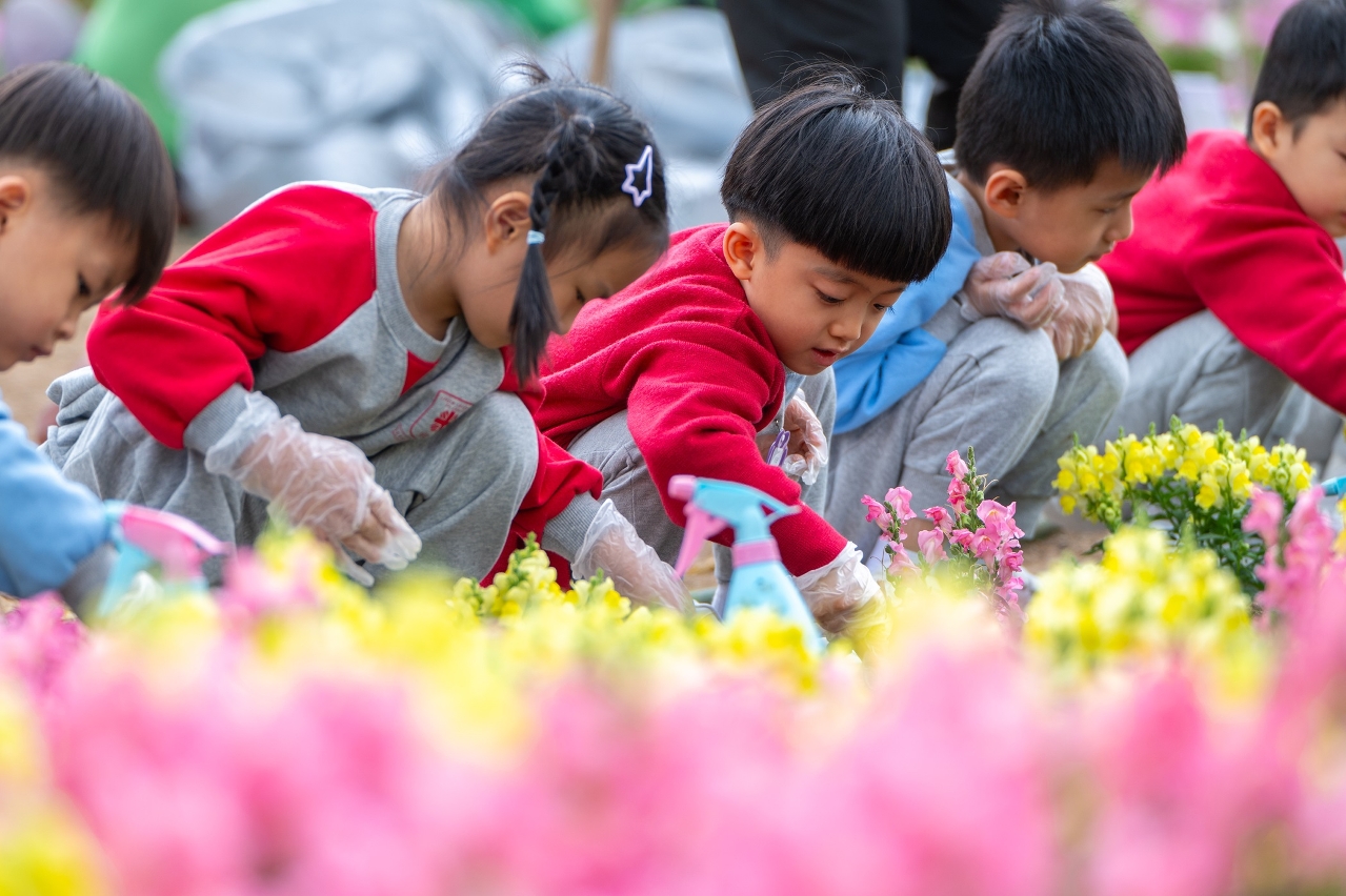 為增添回歸花展的意義,市政署亦組織了本澳小學及幼稚園師生,一同協助回歸花展的花卉種植及佈置,透過身體力行參與社區綠化科普活動,寓意年青一代共同建設特區,親手為澳門回歸祖國25周年送上別具意義的賀禮。