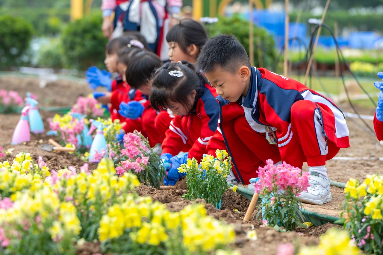 為增添回歸花展的意義,市政署亦組織了本澳小學及幼稚園師生,一同協助回歸花展的花卉種植及佈置,透過身體力行參與社區綠化科普活動,寓意年青一代共同建設特區,親手為澳門回歸祖國25周年送上別具意義的賀禮。