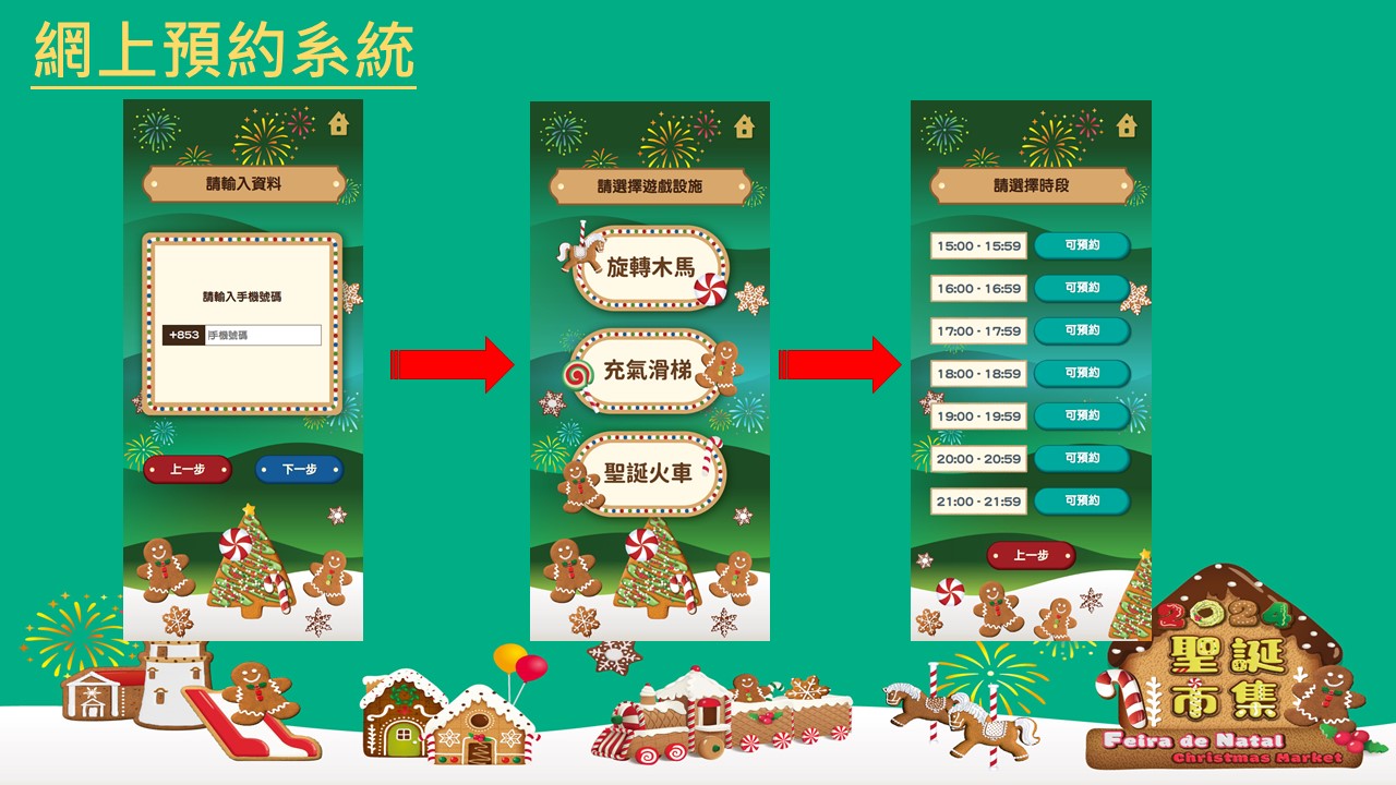 為增添歡樂氣氛,現場將安排流動表演,如聖誕老人扭汽球、小丑雜耍或魔術表演。此外,亦設轉木馬嘉年華、聖誕小火車及充氣滑梯遊戲等深受小朋友歡迎的玩樂項目,供免費遊玩,開放時間為每日下午三時至晚上十時,可透過網上預約取籌,減省排隊輪候時間,現場亦設名額供公眾排隊輪候。