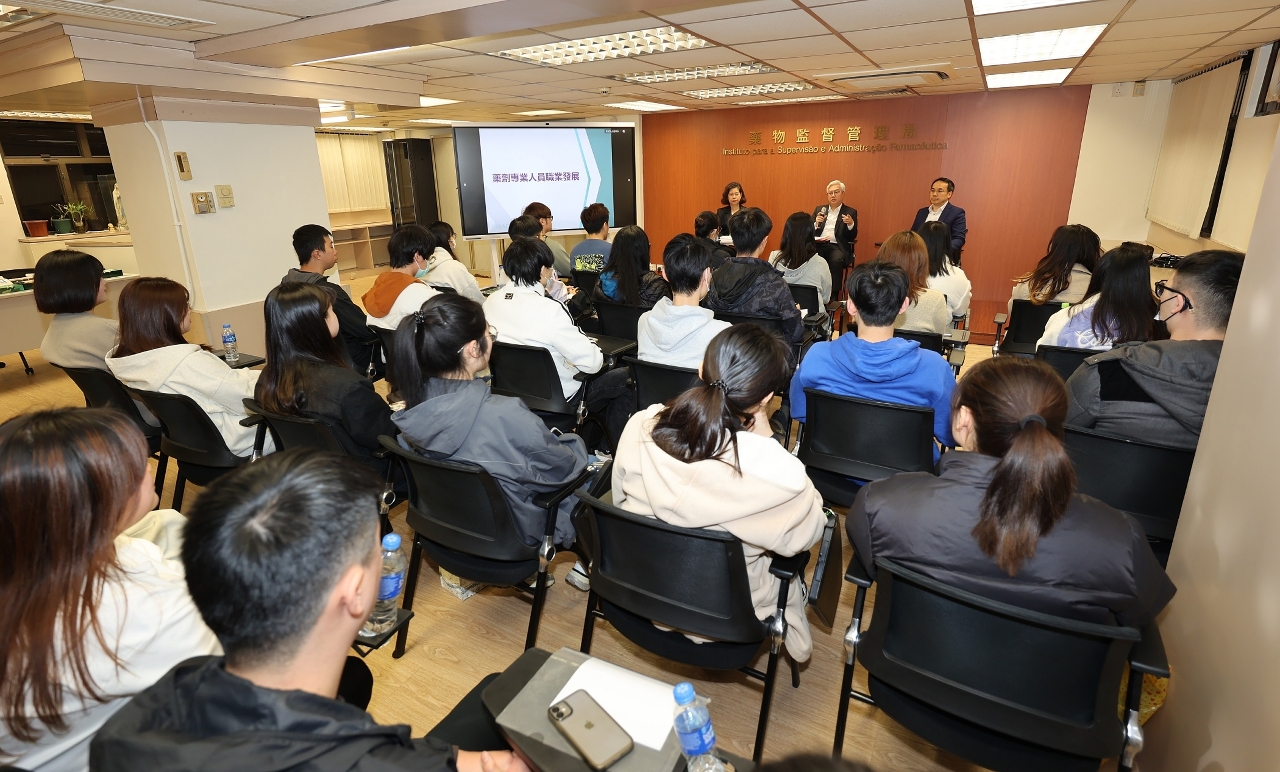 藥物監督管理局於12月18日舉辦2024/2025年度藥劑專業實習人員交流會,為2025年1月即將開展實習的藥劑師、中藥師及藥房技術助理介紹藥劑專業現況和發展前景,期望實習人員透過實習積累經驗及做好職涯規劃,勉勵實習人員日後執業能夠積極持續進修及終身學習。