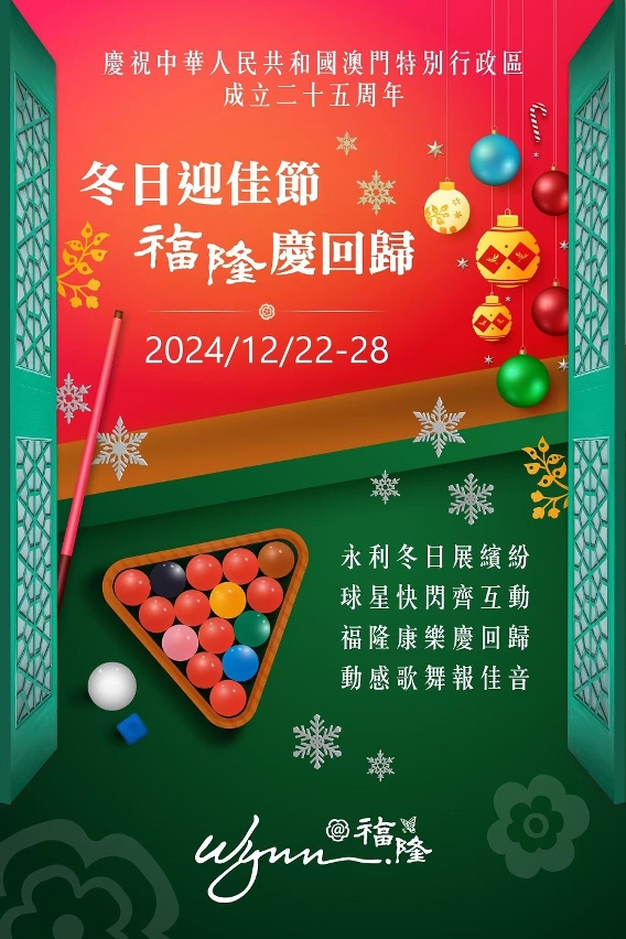 為慶祝中華人民共和國澳門特別行政區成立25周年以及歡度佳節,永利渡假村(澳門)股份有限公司將於聖誕期間在福隆新街步行區注入喜慶和康樂元素,設有“國民斯諾克”的康樂棋體驗,多場快閃表演和市集,並提供多種充滿特色的節日限定飲品。
