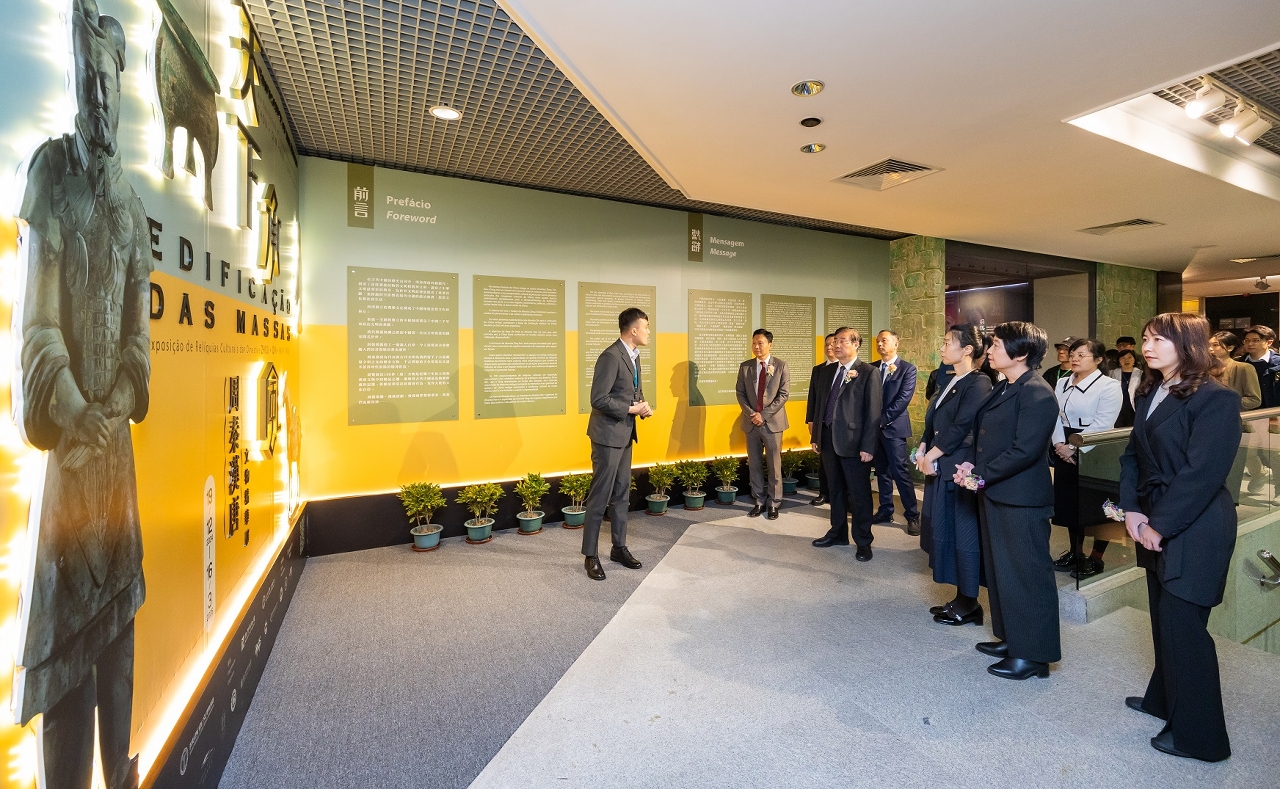 為慶祝中華人民共和國澳門特別行政區成立25周年,由澳門特別行政區政府文化局與陝西省文物局主辦,澳門博物館與陝西歷史博物館承辦,新濠博亞娛樂支持的“天下承風──周秦漢唐文物精華展”今日(12月27日)在澳門博物館開幕,澳門特別行政區政府文化局局長梁惠敏、中央人民政府駐澳門特別行政區聯絡辦公室宣傳文化部副部長白冰、陝西省文物局局長賈強、陝西歷史博物館副館長路智勇、秦始皇帝陵博物院副院長陳志平、新濠博亞娛樂董事鍾玉文及文化局澳門博物館館長盧可茵出席主禮。