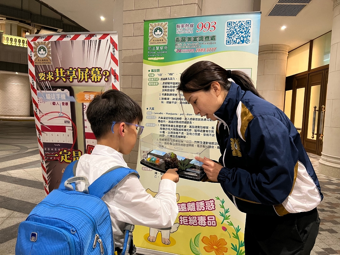 活動期間,司警局透過現場設置防罪資訊展板,向居民詳細介紹毒品、電訊網絡詐騙及盜竊等犯罪的最新作案手法和預防方法,並與居民進行防罪互動遊戲,加深他們對防罪資訊的認識和記憶。同時,司警局人員向居民展示多款仿真毒品模型,讓居民認識常見毒品的外觀,並講解如何辨識毒品,提高他們的防毒、拒毒意識;亦介紹了簡單易用的防盜設備,教導居民加強家居防盜措施,免被不法分子有機可乘。