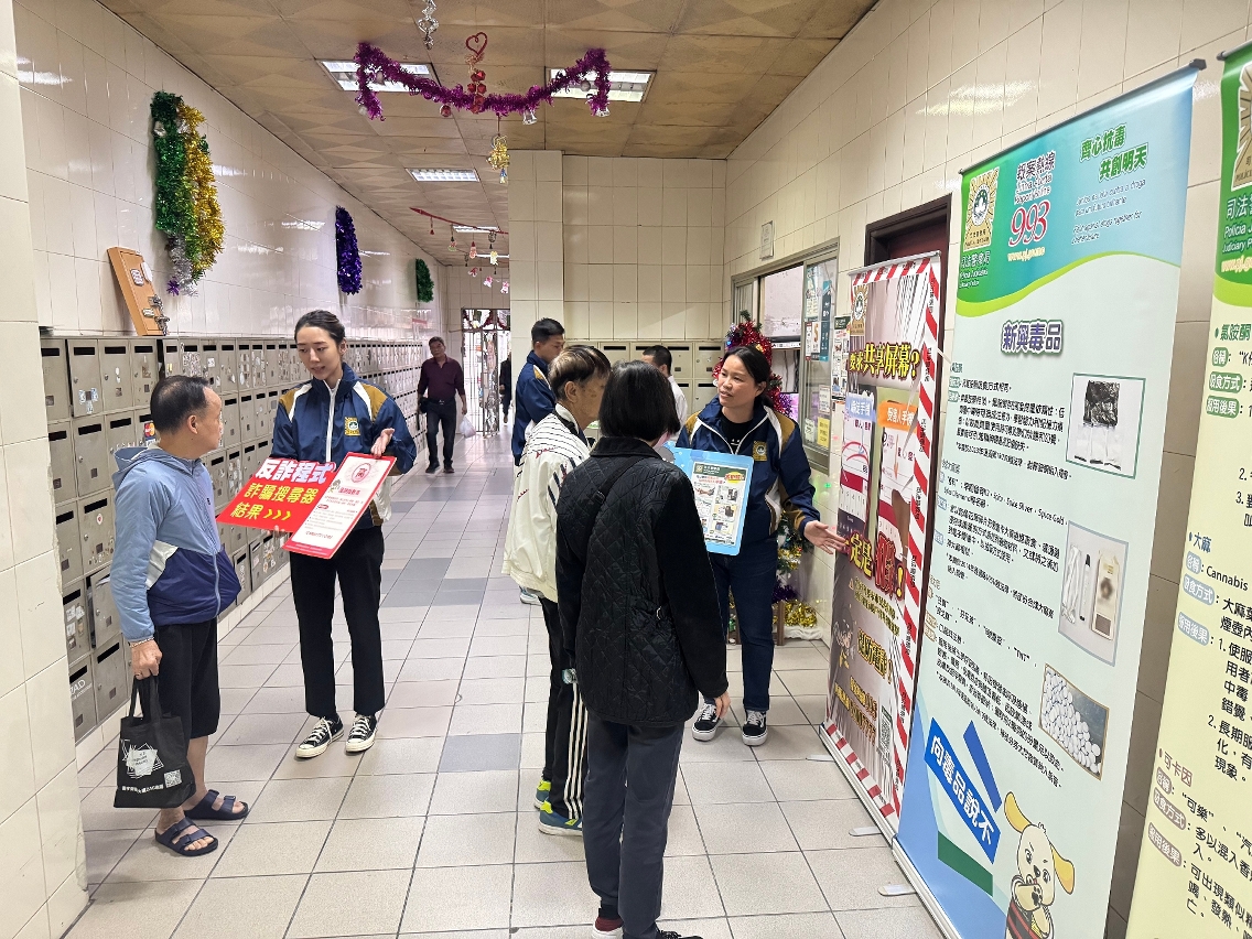 11月5日至12月22日期間,司警局大廈罪案預防組透過本澳各區屋苑的“司警局大廈防罪之友"成員、物業管理公司及大廈業主會協助,在放學及下班時段於屋苑內的大堂及大廈居民出入口舉辦“大廈防罪推廣站"活動,旨在讓更多居民接收到最新防罪資訊,從而提高防罪警覺,免受侵害。