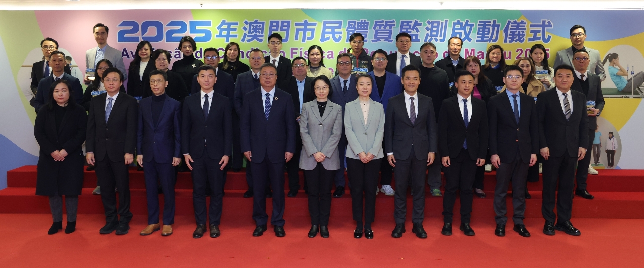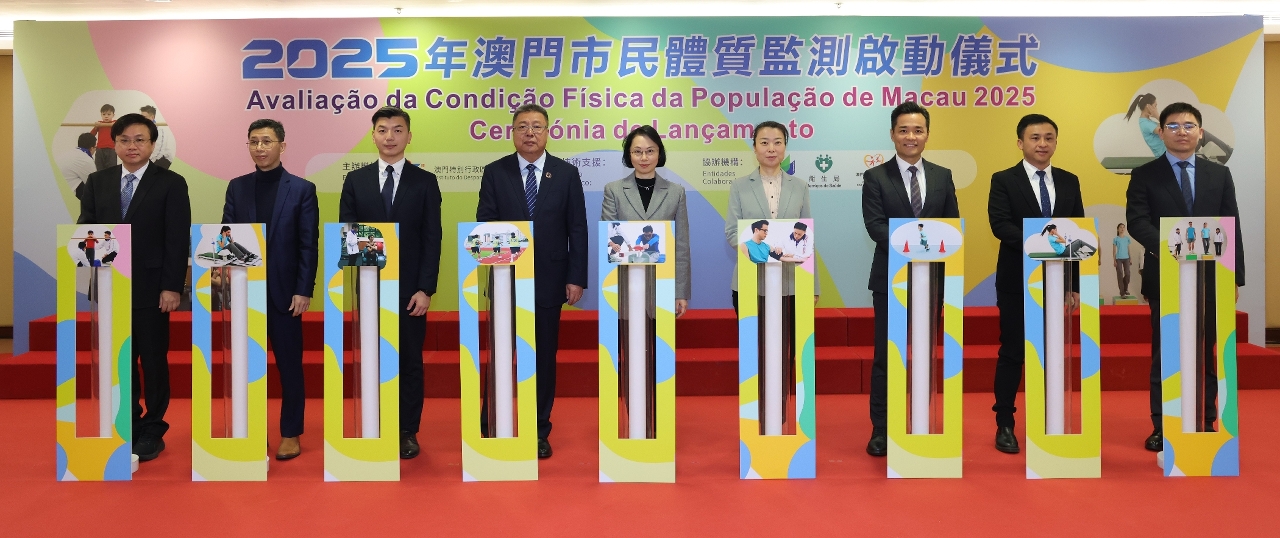由體育局主辦,教育及青年發展局、衛生局、社會工作局和澳門理工大學協辦,並由國家體育總局體育科學研究所提供技術支援的“2025年澳門市民體質監測”於1月開始,展開為期約四個月的測試工作。主辦單位今(14)日上午於澳門奧林匹克體育中心多功能室舉行啟動儀式,出席儀式的主禮嘉賓包括社會文化司司長柯嵐、國家體育總局體育科學研究所所長曹景偉、中聯辦宣傳文化部副部長白冰、體育局局長張子軒、衛生局局長羅奕龍、社會工作局局長韓衛、教育及青年發展局代局長黃嘉祺、澳門理工大學校長嚴肇基、國家體育總局體育科學研究所國民體質與科學健身研究中心主任徐建方及副主任張彥峰、一眾體育委員,以及參與監測的各機構代表等,並即場視察了監測現場的測試工作。