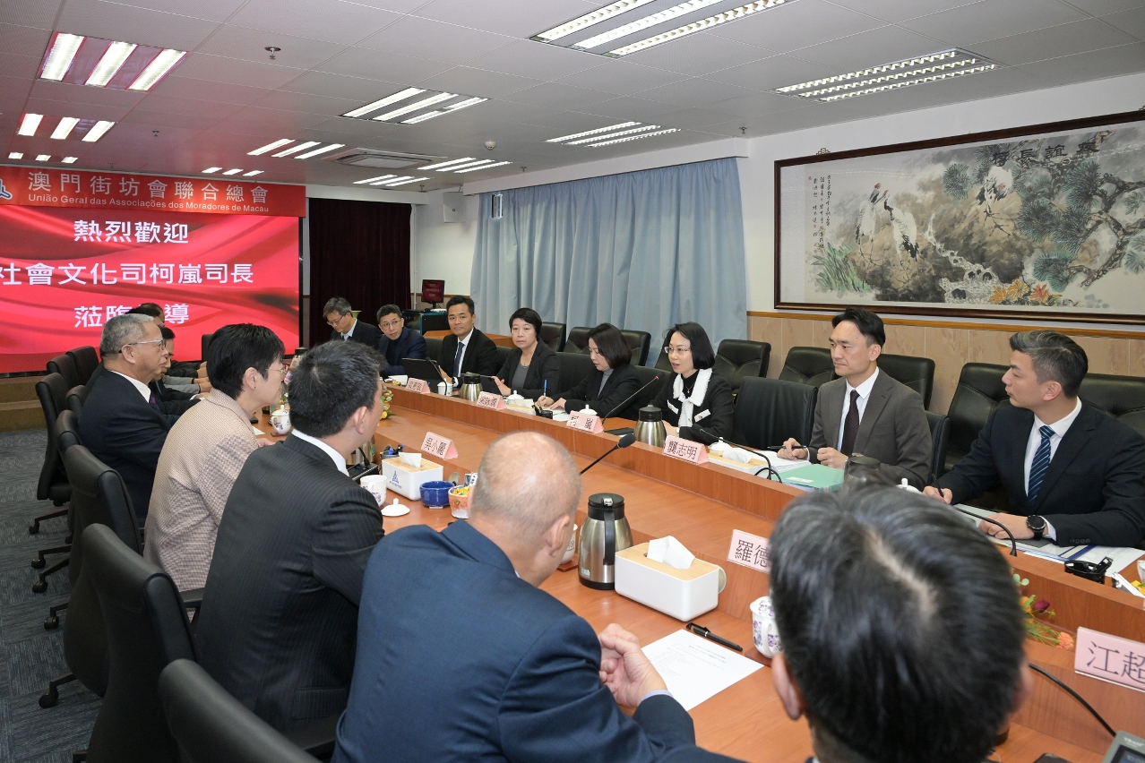 社會文化司司長柯嵐今(18)日上午拜訪澳門街坊會聯合總會,就編製社會文化範疇本年度施政方針聽取意見和建議。