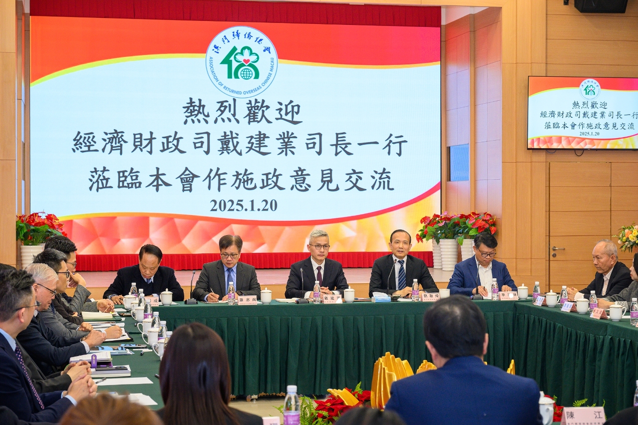 經濟財政司司長戴建業今(20)日下午到訪歸僑總會並舉行座談,聽取該會對經濟財政範疇施政工作的意見和建議。