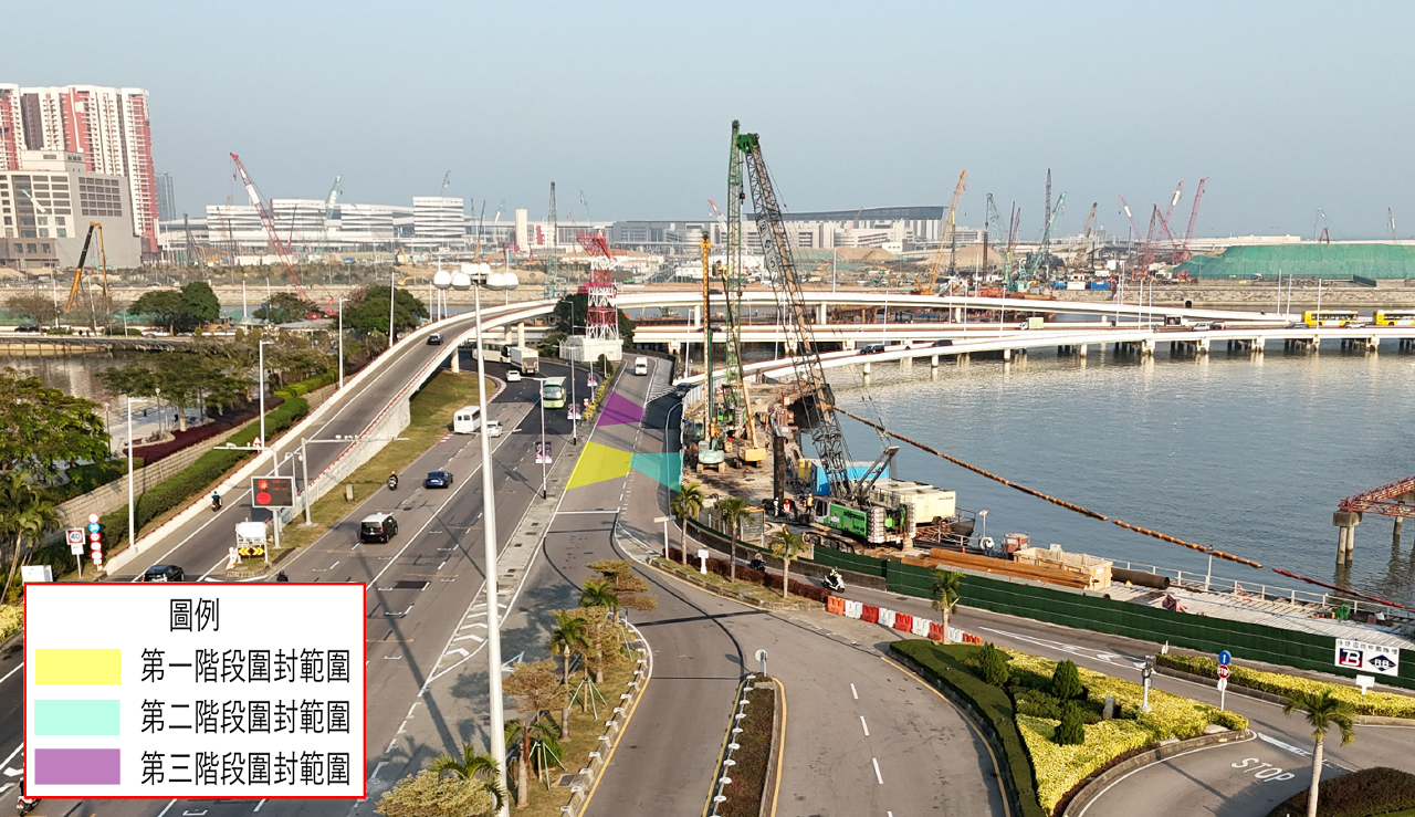 配合“新城填海A區與澳門半島連接橋(A3)設計連建造工程”的地下公共管線探井工作,友誼大馬路往外港碼頭方向的行車道將分三個階段對部份行車道進行臨時圍封,實施有限度通車。