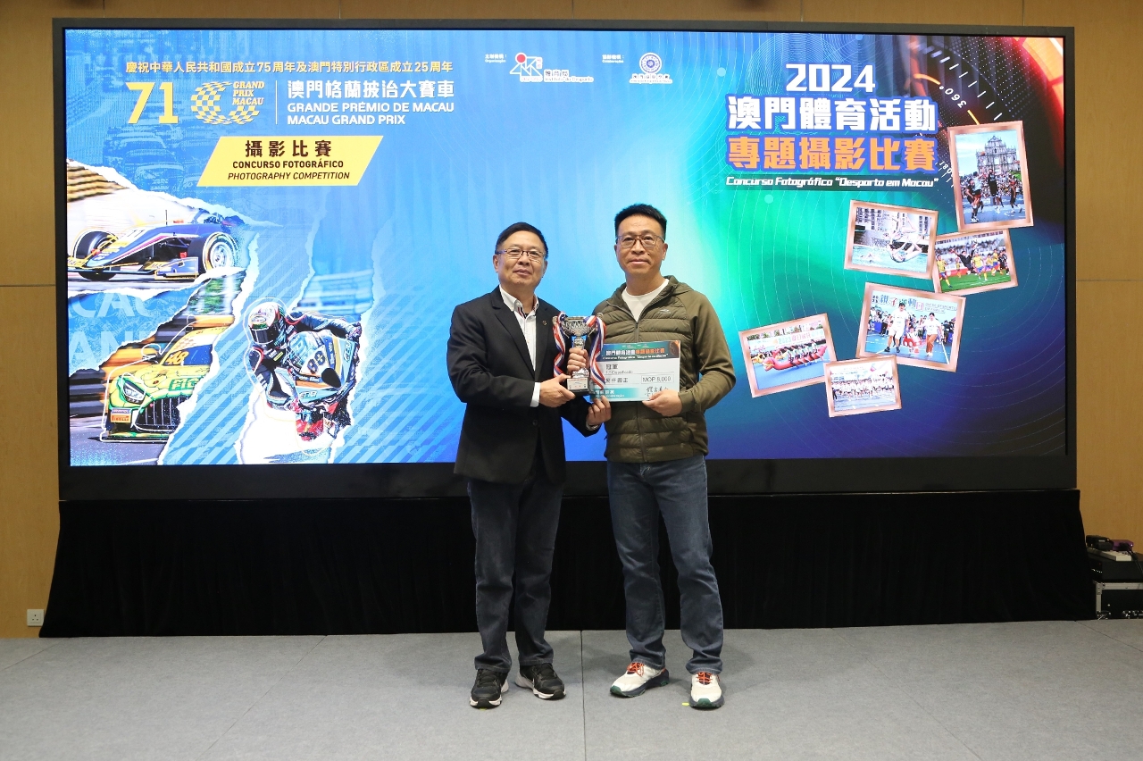 由體育局主辦,澳門攝影學會協辦的2024“澳門體育活動”專題攝影比賽,以及第71屆澳門格蘭披治大賽車攝影比賽已順利完成。頒獎儀式今(21)日下午六時半在體育局會議室進行,出席的嘉賓包括體育局局長張子軒、體育局代副局長李詩靈、體育局代廳長盧綺雲、澳門攝影學會會員大會副主席馬志信、澳門攝影學會理事長黃明輝、澳門攝影學會副理事長梁炎佳。