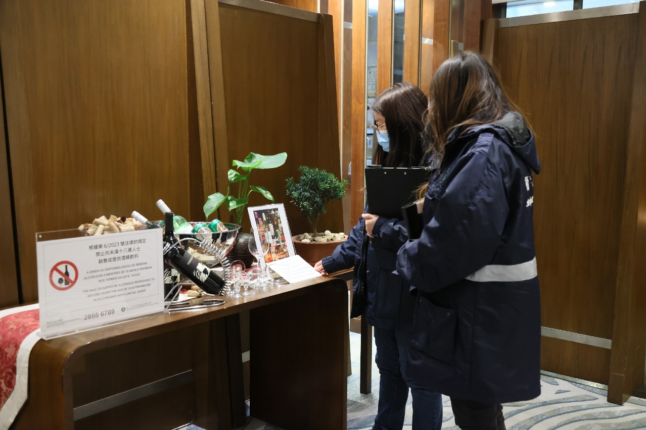 在控酒方面,2024年共錄得47宗涉嫌違反《控酒法》個案,當中11宗涉及違法向未成年人銷售或提供酒精飲料;其他則涉及銷售或提供酒精飲料的場所未有按規定張貼經行政長官批示核准禁止向未成年人銷售或提供酒精飲料的標誌、屬提供自助服務的商業場所未有劃定及清晰標示陳列酒精飲料及非酒精飲料的區域、展示酒精飲料廣告時亦未有以中文、葡文及英文標明警語。
