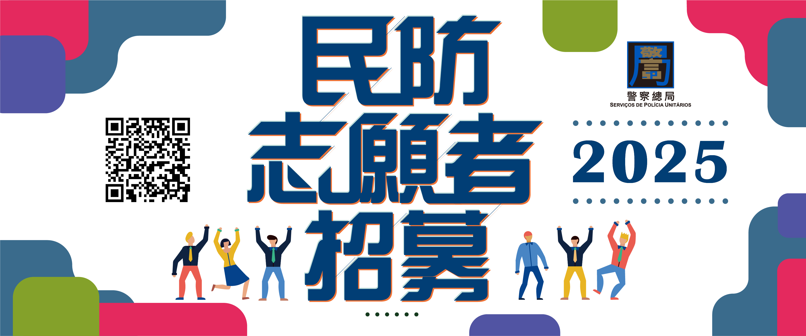 警察總局現正招募2025年度民防志願者,招募人數為100人,歡迎年齡介乎18至55歲,具服務熱忱的澳門居民報名參與,為本澳民防工作的宣傳教育、災後援助及復原提供協助。