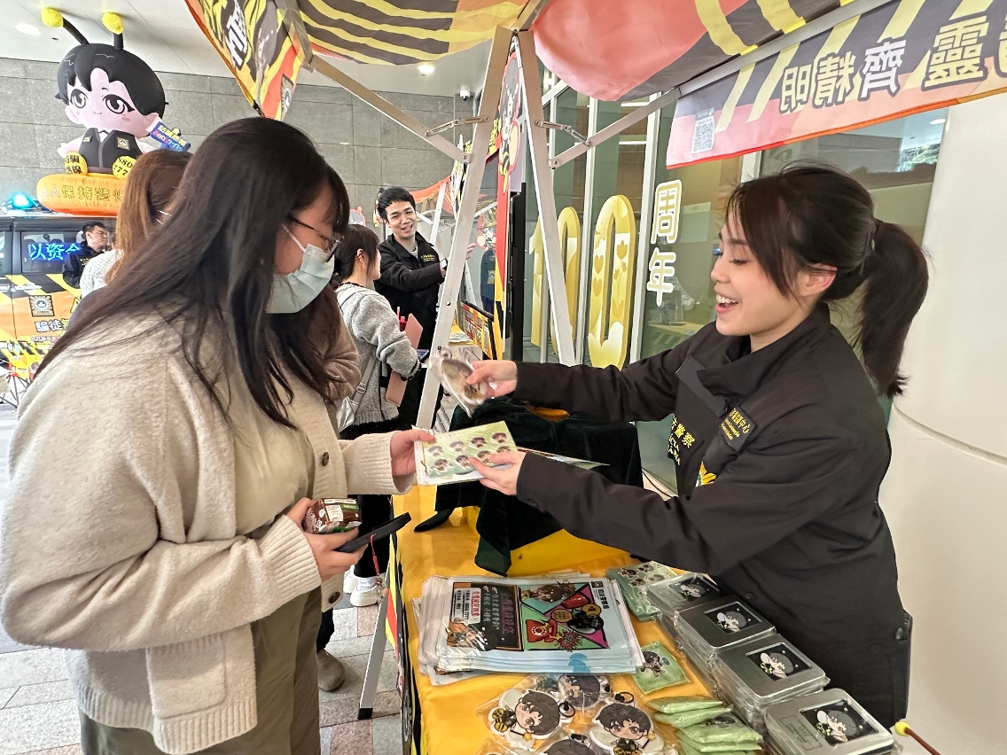 “反詐宣傳車”設計新穎,車身印有清晰顯眼的防騙標語“一人醒目,全家精明;人人保持警惕,騙徒無所遁形”,車頂上裝設高逾3.8米的司警局反詐吉祥物“防騙小精靈”大型公仔,既引人注目,又能令人對宣傳車和相關防騙宣傳留下深刻印象。宣傳車還可延伸擴建戶外攤位設施,隨時設置流動防騙推廣行動站,站內共設有四個主題攤位,包括:“智慧防騙加油站”── 設有防騙測驗卷供學生填寫,司警局人員會即時對未能取得滿分的參加者進行針對性講解,加深其對各類騙案手法的了解;“反詐程式你要識”── 司警局人員即場講解及演示如何透過“反詐程式”識別騙局及上報涉詐訊息;“全民防騙大作戰”──以輕鬆有趣的觸屏小遊戲,讓參與者在遊戲中學習防騙知識,寓教於樂;“反詐精英齊留影”── 為參加者即場拍照並打印成個人化照片,照片上附有精心設計的反詐主題及警醒口號,不僅能讓參加者留作紀念,還能持續喚起其參與活動的回憶,有效提醒其關注防騙資訊。