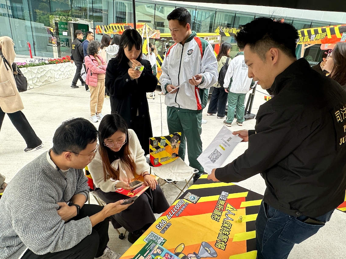 司法警察局持續推進聯動教育界開展的“校園防騙疫苗計劃”,早前落實相關計劃中的“反詐宣傳車”項目,並於2月27日至3月17日期間,先後到訪澳門理工大學、澳門大學、澳門城市大學、澳門旅遊大學、澳門科技大學、聖若瑟大學及澳門鏡湖護理學院七所高等院校進行防騙宣傳,累計接觸超過1,400名師生。活動不僅向師生傳遞反詐防罪資訊,更針對學生的防騙弱點和誤區進行強化教育,進一步提升校園師生防騙識騙意識及能力。