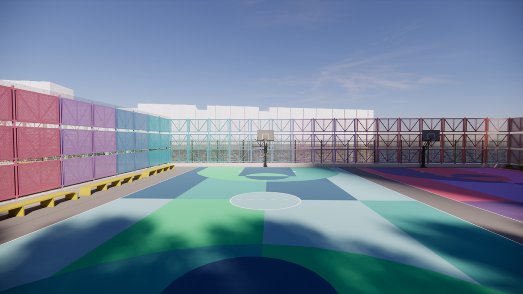 青洲河邊馬路休憩區,面積約7,245平方米。因應休憩區內有多個球場的運動元素及空間狹長特點,重整規劃將以休閒步道及原有行道樹串連各功能區,同時,優化各球場的鋪面,豐富場地視覺感觀,增設座椅及局部遮陽,讓球場使用者有更好的體驗。而新增兒童遊樂區設有多組攀爬遊具,讓兒童在玩樂中鍛鍊體能。健身區則設多種類康體設施,增加洗手台,飲水機,公廁等配套,並優化遛狗區。