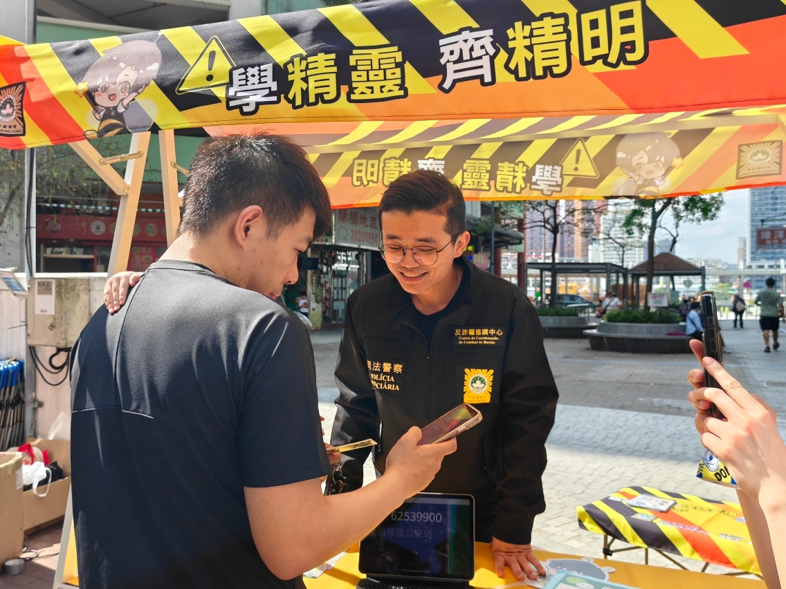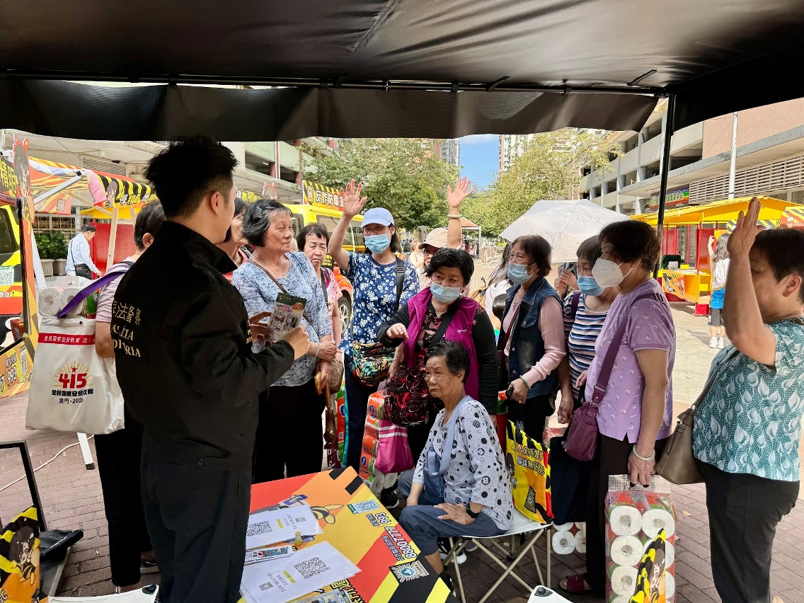 司法警察局全新設計的“反詐宣傳車”早前已試運行巡訪本澳七所高等院校,開展防騙宣傳工作。為進一步擴大防騙資訊的覆蓋範圍,宣傳車現將巡迴範圍逐步拓展至全澳各社區。首階段活動已於4月19日及21日分別在氹仔花城公園側及筷子基綠楊花園休憩區舉行,兩場活動共吸引逾500名市民參與。適逢復活節假期,不少市民攜同家人到場參與,涵蓋長者、青少年等不同年齡層,有效將防騙意識深入社區各個群體,為構建全民防騙網絡發揮積極作用。