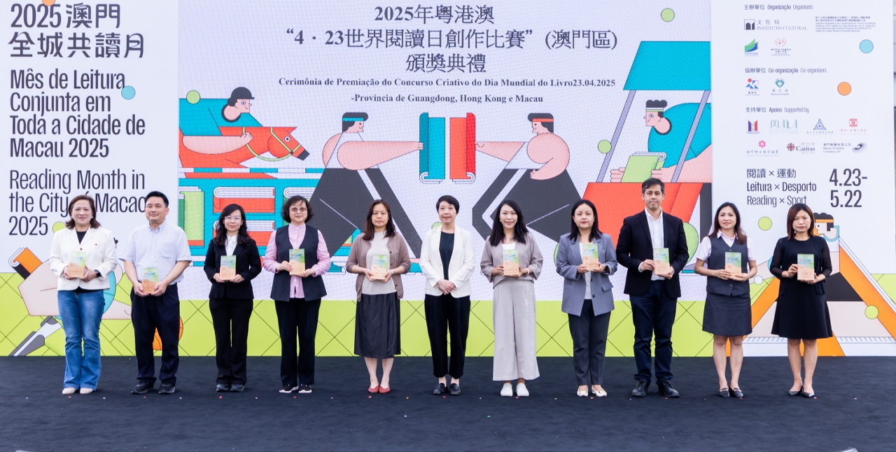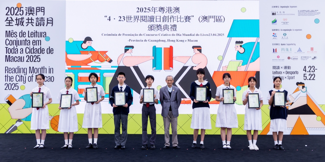 為慶祝“4‧23世界閱讀日”,文化局聯同廣州、深圳及香港等城市之公共圖書館合作舉辦2025年粵港澳“4‧23世界閱讀日創作比賽”。澳門區頒獎禮於4月27日(星期日)在澳門文化中心廣場舉行,65位學生獲頒發獎狀及向22間得獎者所屬學校致送紀念座,徵文組初中組學生分享獲獎感言,場面熱鬧。