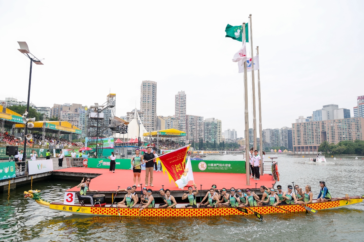 由體育局、澳娛綜合度假股份有限公司(“澳娛綜合”)及中國澳門龍舟總會主辦,市政署及行政公職局協辦的“2025澳娛綜合澳門國際龍舟賽”,今(25)日在南灣湖水上活動中心上演澳門標準龍公開組及女子組賽事。經過連場激戰,消防局繼昨(24)日小龍賽公開組及政府部門小龍賽奪冠後,再奪得澳門標準龍公開組冠軍,成為三冠王,通利建置則奪得澳門標準龍女子組冠軍,而今年新增的混合組由澳娛綜合金禧奪冠。5月31日端午節正日將進行多場精彩賽事,包括邀請賽標準龍公開組、女子組及大學生500米的賽事。