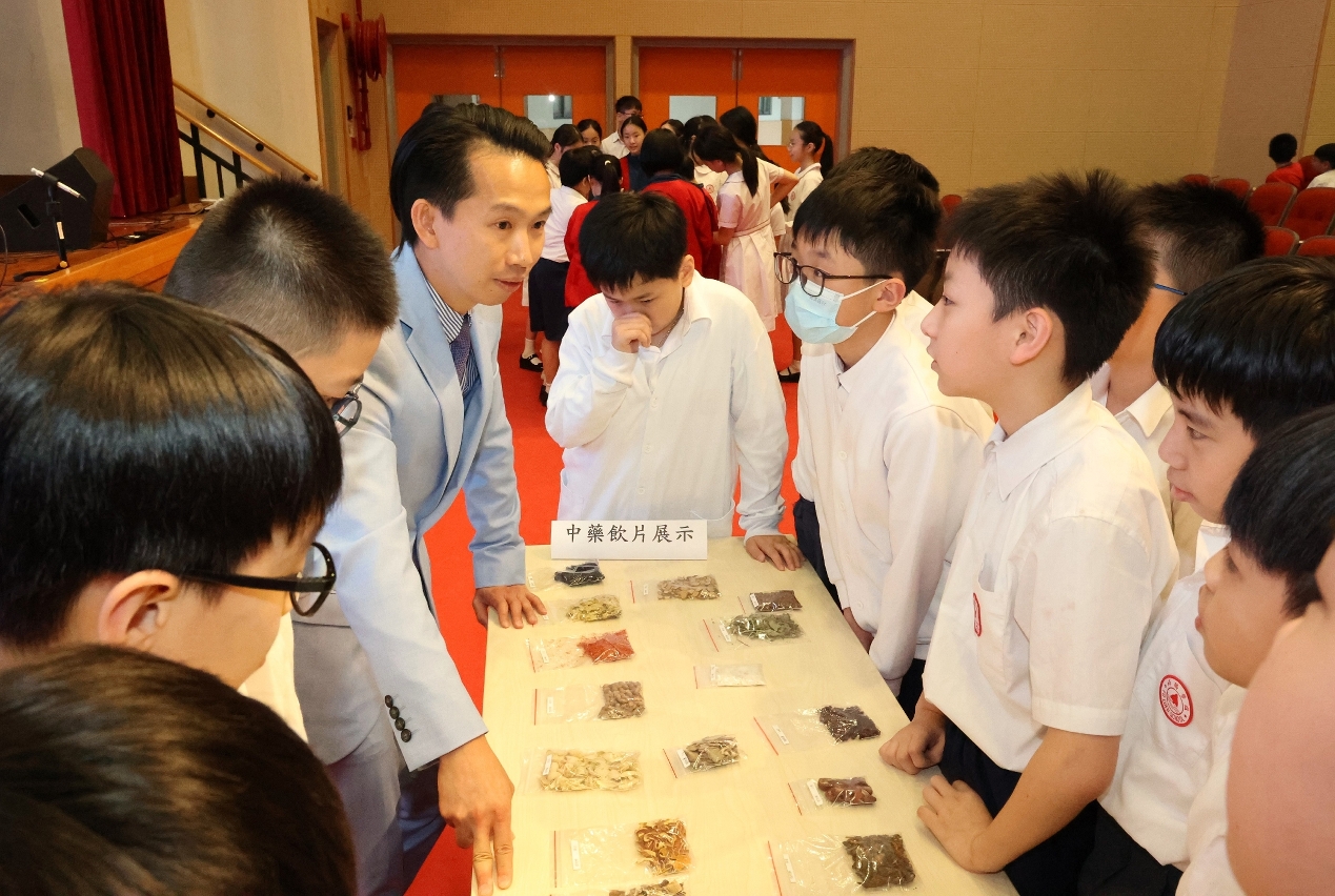 活動期間,藥監局中藥處處長、中藥師和中醫生向參加活動的師生介紹中醫藥的發展歷史與核心理念,並結合生活案例,深入淺出地講解中醫基本知識、中藥的起源、中醫藥從古至今的應用以及中藥的分類等,同時向學生展示常見中藥飲片,讓學生觀察中藥的外形及感受氣味等特徵,通過視覺、觸覺及嗅覺的直觀體驗,進一步加深他們對中藥的認識。