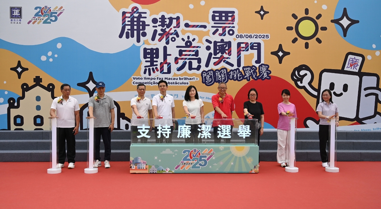 由廉政公署舉辦的“廉潔一票 點亮澳門”闖關挑戰賽今(8)日於塔石廣場圓滿舉行。廉署期望透過是次活動,讓參加者親身體驗公平競技的重要性,提升市民對廉潔選舉的關注和認知,營造全城廉潔選舉的氛圍。