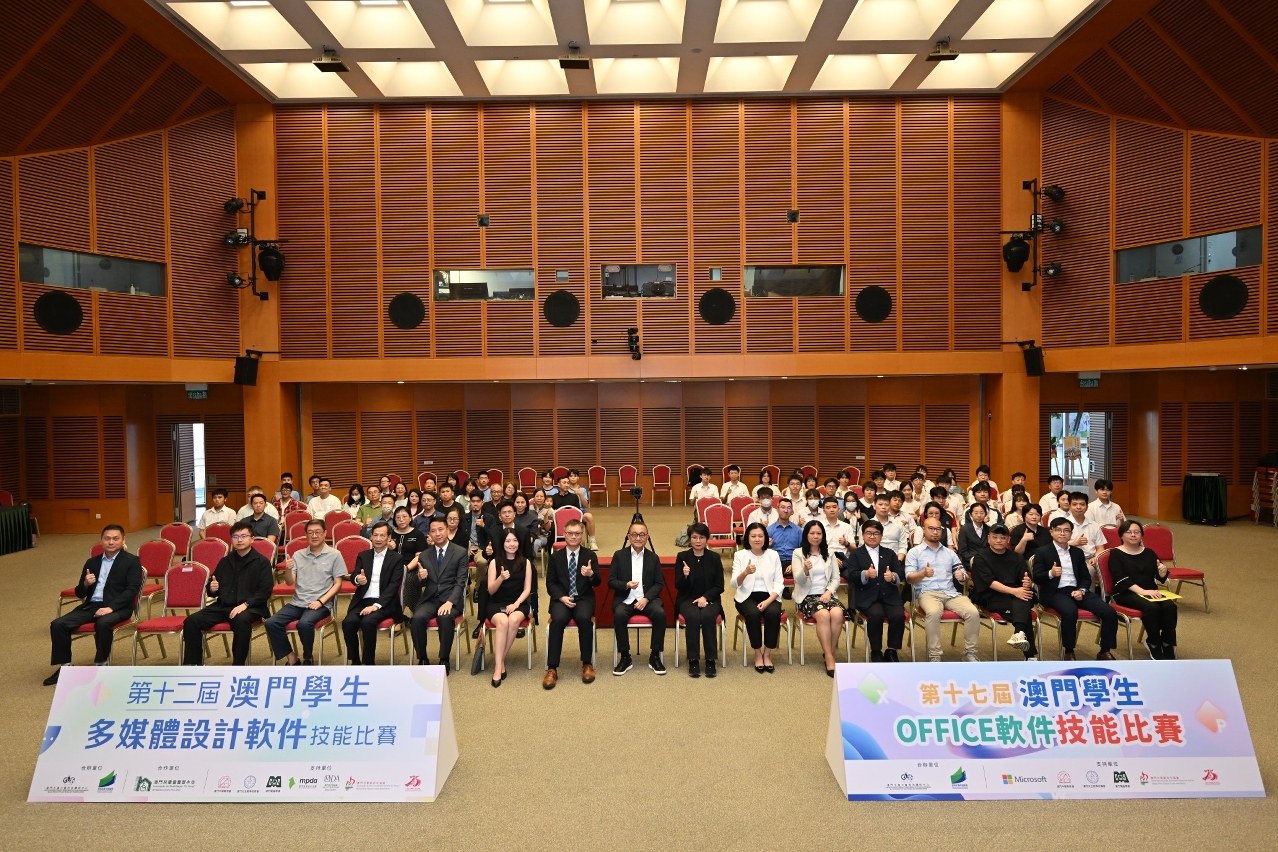 澳門生産力暨科技轉移中心今(20)日假澳門科學館舉行“第十七屆澳門學生Office軟件技能比賽”及“第十二屆澳門學生多媒體設計軟件技能比賽”頒獎典禮,賽事共吸引458名學生參加。活動同時為中國澳門代表出戰2025年“Microsoft Office技能全球大賽”及“Adobe多媒體設計軟件技能全球大賽”舉行啟動儀式,見證澳門資訊科技的教育成果。
