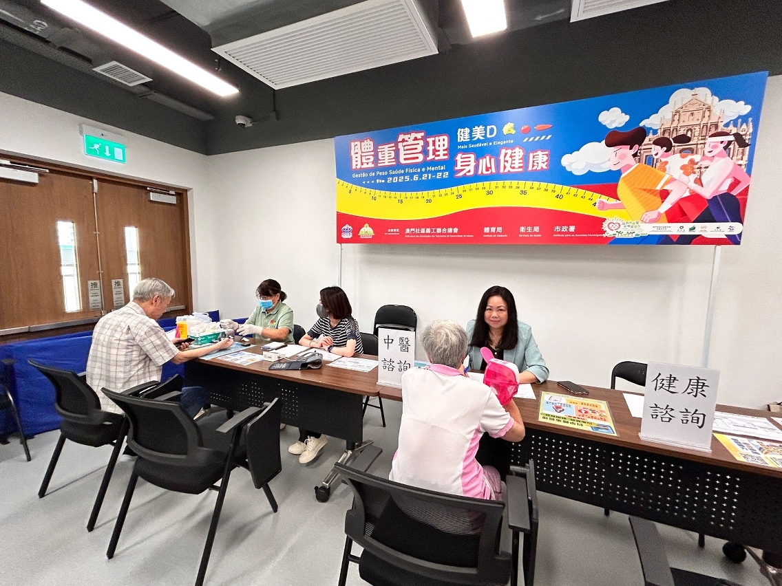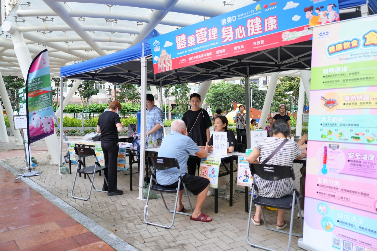 為配合特區政府2025年施政工作,同時積極推動「健康社區」計劃,廣泛聯動各界社團力量,發揮協同效應,落實資源下沉至社區,體育局、衛生局、市政署通過跨部門的合作及聯同14個社團組織於6月21及22日成功舉辦以「體重管理‧身心健康」為主題的社區健康諮詢站活動。活動在全澳各區共設置13 個室內及室外諮詢站,連續兩天的活動共吸引約1萬人次參與,現場氣氛熱烈,居民反應積極,成功以深入社區的方式提升了居民對體重管理及身心健康的關注。