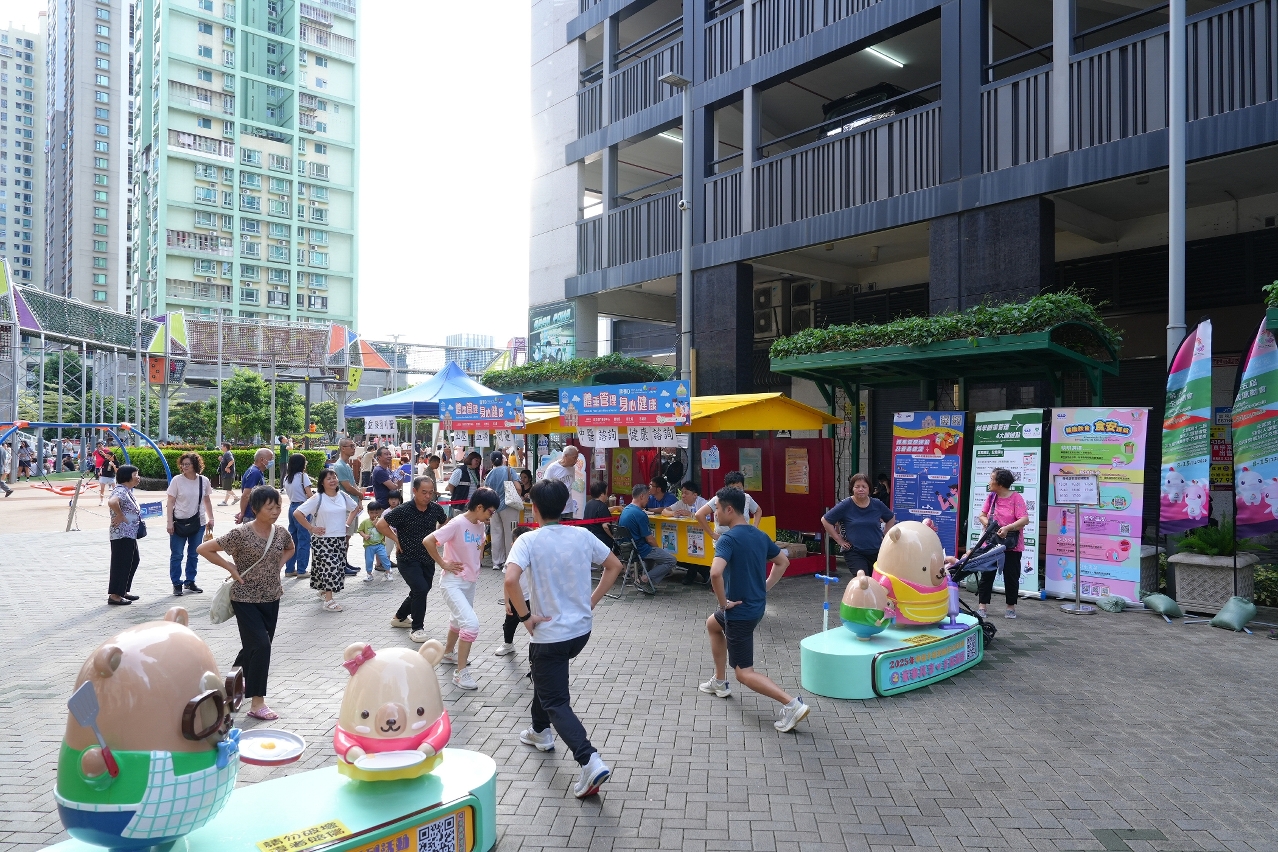 是次活動內容豐富多元,包括現場教導居家運動、測量體重指數(BMI)、腰圍、血壓和血糖;推廣「我的健康」的「健康管理」及「心理健康評估」功能、提供健康諮詢和中醫諮詢,同場亦展示了運動及營養建議、科學體重管理及食品安全資訊的展板,並設置「讓心情放晴」背景板和拍照道具供居民拍照打卡,現場氣氛熱鬧,參與的居民絡繹不絕。有長者、年青人,甚至父母帶同其子女一起參加活動。參加者踴躍參與各項健康檢測,包括體重、血壓和血糖測量,並接受中醫師的細心把脈問診。在居家運動教學區,不少居民在專業教練指導下學習簡單實用的伸展動作。參與居民均表示活動有助他們更瞭解超重肥胖、食品安全和身心健康的問題,並學習到實用的運動及飲食管理技巧,對日常健康生活大有裨益。