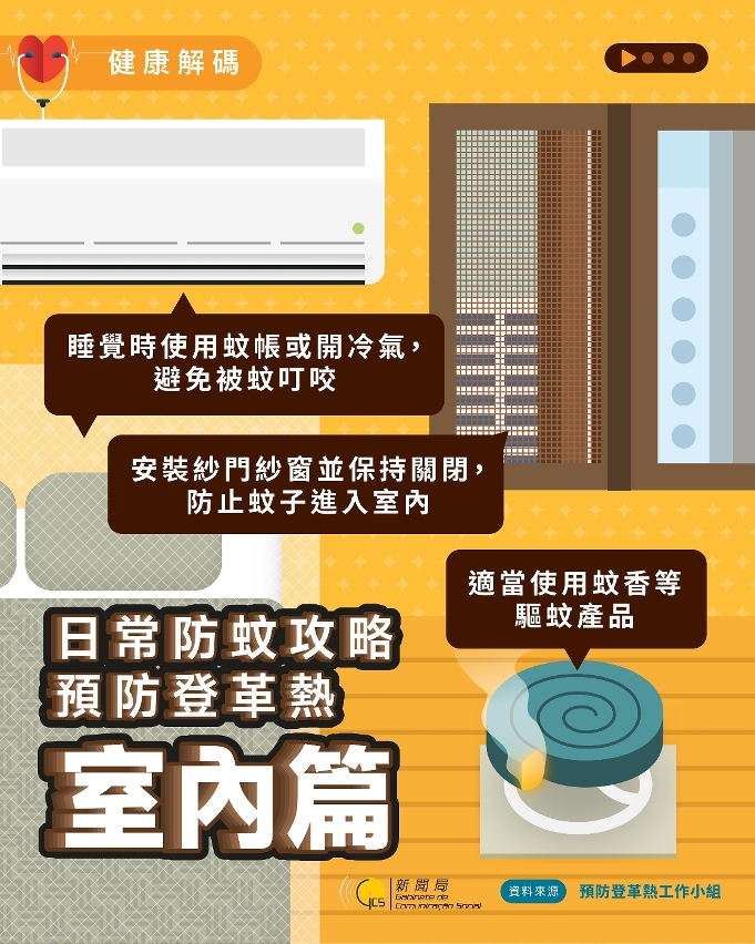 2. 在家中使用紗窗、蚊帳或開冷氣等措施,減少被蚊叮咬機會;