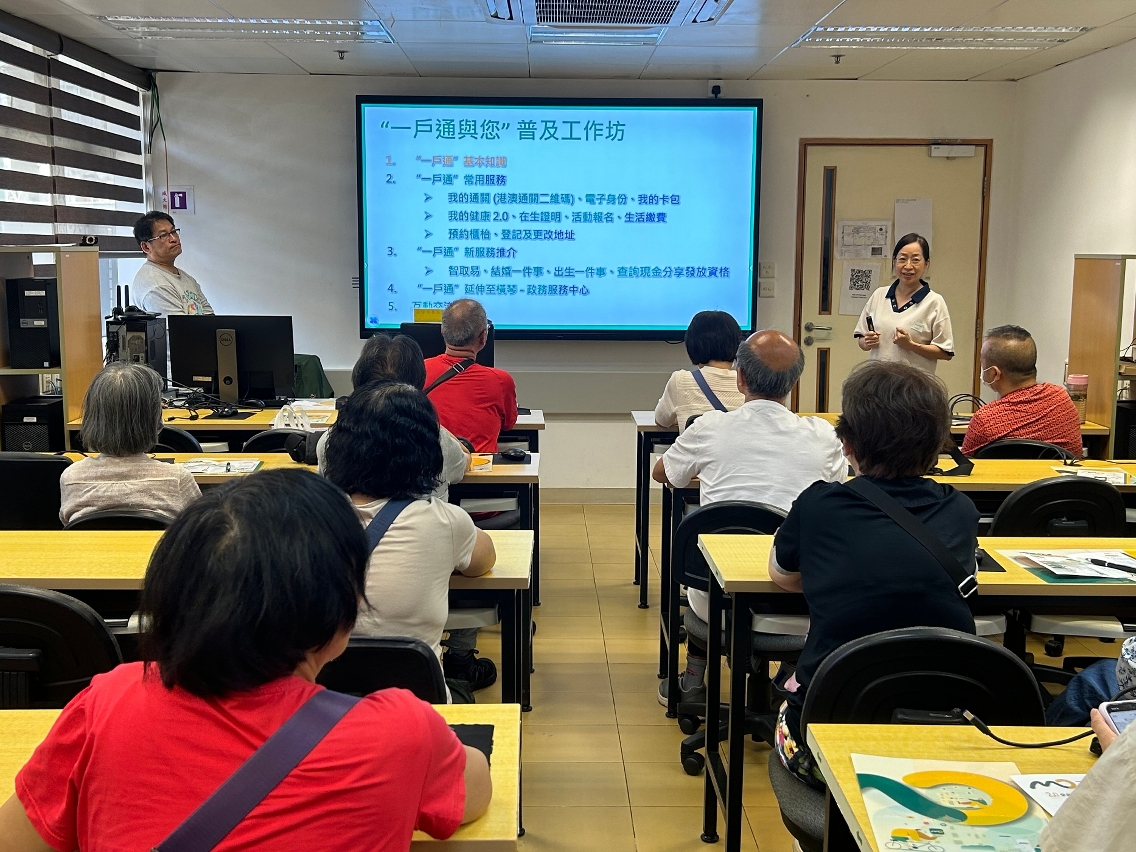 在6月24日舉行的工作坊,專業導師通過互動式教學,結合教學影片操作示範,向參加者介紹如何註冊、登錄及使用“一戶通”平台的各項核心功能,涵蓋電子身份認證、線上活動報名、生活費用繳付、櫃枱服務預約、地址變更登記、智取易服務、港澳通關二維碼生成及在生證明等實用項目。此外,是次工作坊亦新增“查詢現金分享發放資格”內容,協助參加者查詢有關2025年度現金分享計劃資格。在互動問答環節中,參加者對服務內容非常有興趣並積極提問,導師熱心逐一解答,現場交流氣氛熱烈。
