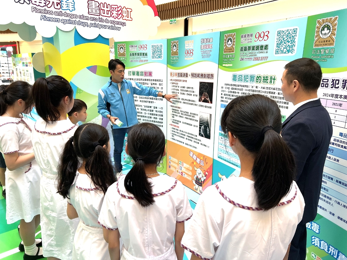 司法警察局舉辦的“全民禁毒週"活動於6月26日至7月2日在氹仔星皓廣場圓滿舉行。是次活動以“青少年拒毒"為主題,並以“禁毒先鋒,畫出彩虹”為口號,透過豐富多元的互動形式推動社會大眾關注毒品問題,共同守護青少年遠離毒品危害。為期一週的活動共吸引約11,800人次到場參與,反應熱烈,成效顯著。