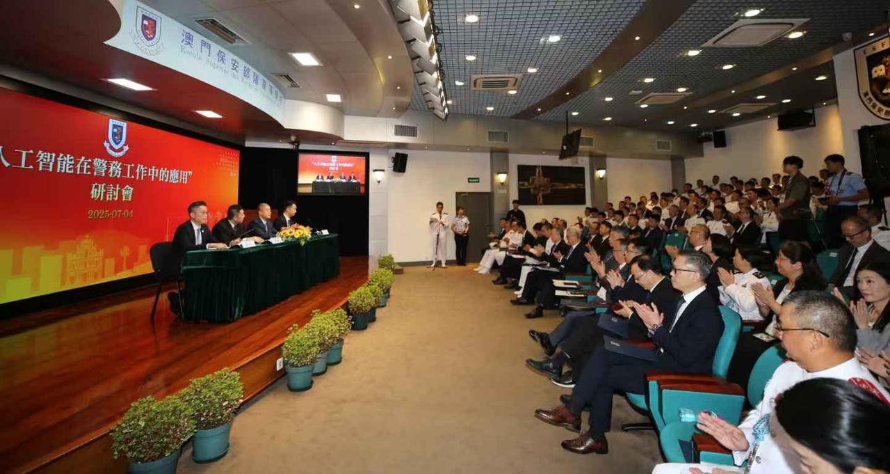 緊接着進行專題研討會,邀請到四位來自內地、香港和澳門的專家學者就“人工智能在警務工作中的應用”主題分享警務經驗和智慧。發言嘉賓及題目依次為中國人民公安大學信息網絡安全學院陳鵬副院長的〈人工智慧技術賦能警務工作的現狀與展望〉、香港警務處林國鵬署理警司的〈人工智慧在香港警務工作中的應用〉、中國人民警察大學智慧警務學院張雙獅副教授的〈人工智能的警務應用〉和警察總局電腦及資訊科技廳廳長鄭奇添的〈保安範疇智慧警務智慧化升級構思與行動建議〉。會後,在交流環節中,與會者踴躍提問,氣氛熱烈。研討會並設直播點,讓本澳保安部隊人員可以學習人工智能在警務運用的前沿知識,提升專業能力,做好維護社會安全的任務。