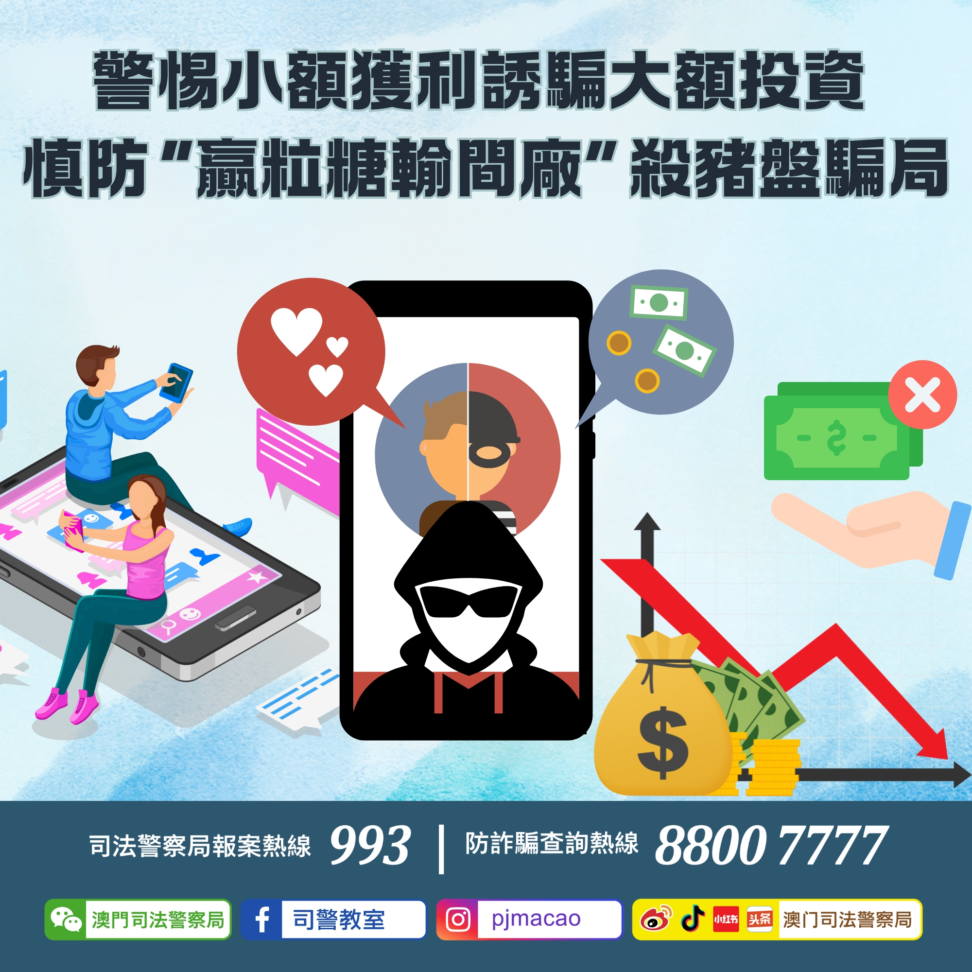 • 司警局呼籲警惕小額獲利誘騙大額資金 慎防“贏粒糖輸間廠”殺豬盤騙局