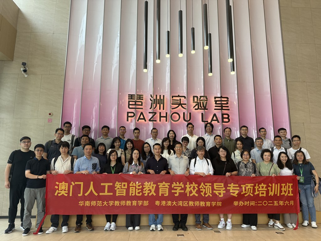 “人工智能教育學校領導專項培訓班”共40名學校領導、中高層人員,以及學科組長於6月11至13日前往廣州市,參與多元主題的人工智能教育專題講座和教研交流活動。主講者以廣東省人工智能教育最新發展為例,讓教學人員掌握師生素養培育策略和課程安排,以及運用生成式人工智能優化校務流程。學員一行到訪廣州市八一實驗學校,了解教師如何利用生成式人工智能準備教學、輔助生成教學設計和課件等資源;此外亦參訪了琶洲實驗室,重點認識人工智能最新高端科技,以助其於校內應用相關技術促進教育管理與人工智能創新融合。