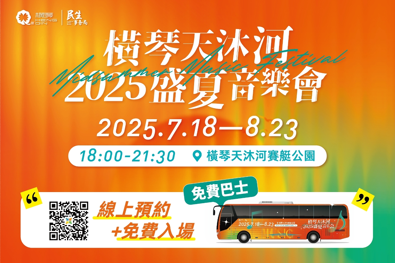 由橫琴粵澳深度合作區民生事務局主辦的“橫琴天沐河2025盛夏音樂會”本周五(18日)傍晚六時三十分在天沐河賽艇公園開幕。首周兩場音樂會今晚八時起接受網上預約,有興趣人士可通過“橫琴民生”公眾號進入預約平台,或掃描二維碼進行預約,演出當天憑預約二維碼入場。為便利澳門居民參加音樂會,設有免費穿梭巴行走橫琴口岸和賽艇公園接送入場觀眾,演出場地附近並設停車場。