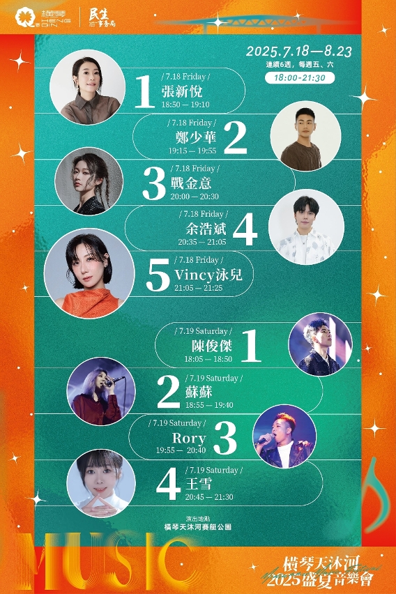 • 橫琴天沐河2025盛夏音樂會(第一週嘉賓海報)