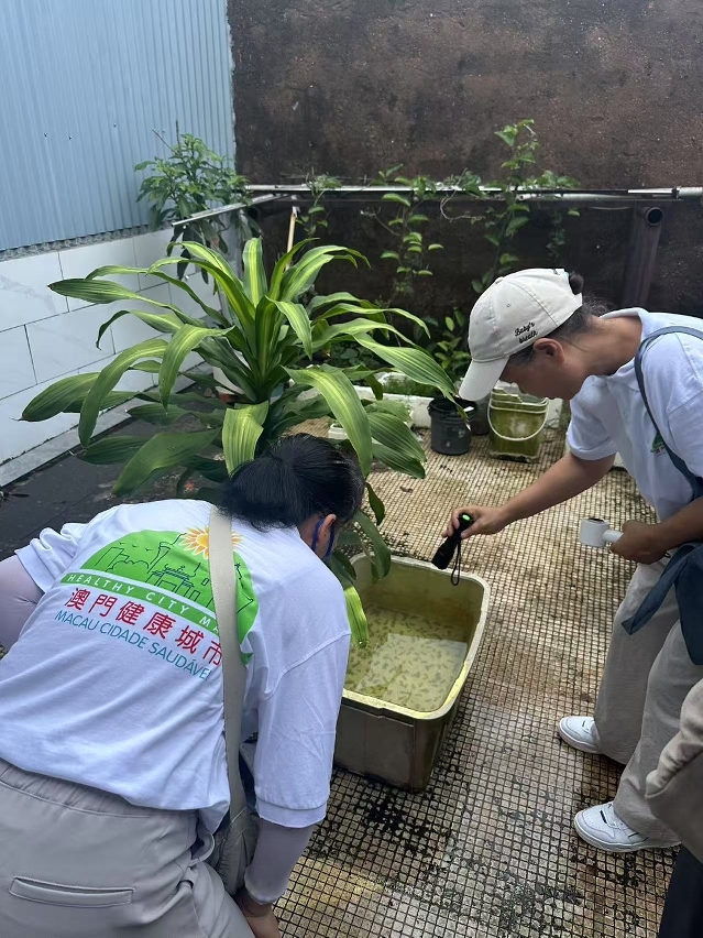 為提升居民對蚊子孳生源的識別和清除能力,共同防範基孔肯亞熱和登革熱,衛生局自8月3日起,聯同澳門工會聯合總會、澳門街坊會聯合總會、澳門婦女聯合總會、由市政署召集的兩個外僱社團(澳門越南同鄉聯誼會、俾度莉關注印尼移工組織)等人員組成宣導隊伍,展開“健康社區—全城家家戶戶清積水”防控雙熱社區聯合大行動。