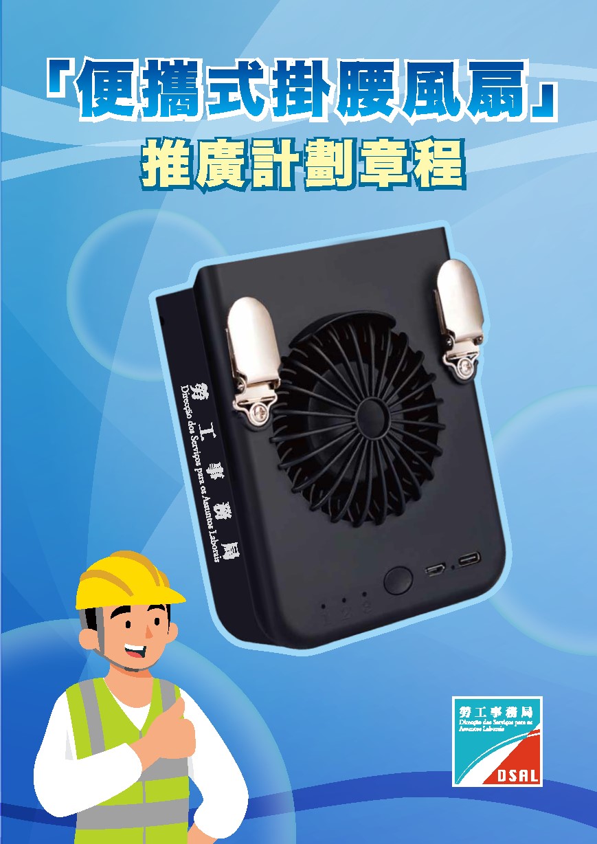 此外,勞工局正推出「抗熱服及防曬帽套」及「便攜式掛腰風扇」推廣計劃,歡迎合資格的中小型企業申請。另外,亦備有《熱帶氣旋、暴雨及特殊天氣等情況下的工作安全指引》及預防中暑的海報,倘巿民有意獲取更多職安健資訊,或參加有關工作坊、課程、講座等,歡迎瀏覽勞工局網頁www.dsal.gov.mo的職安健天地,以了解最新的職安健資訊,亦可致電28717781或電郵dsaldsso@dsal.gov.mo查詢。