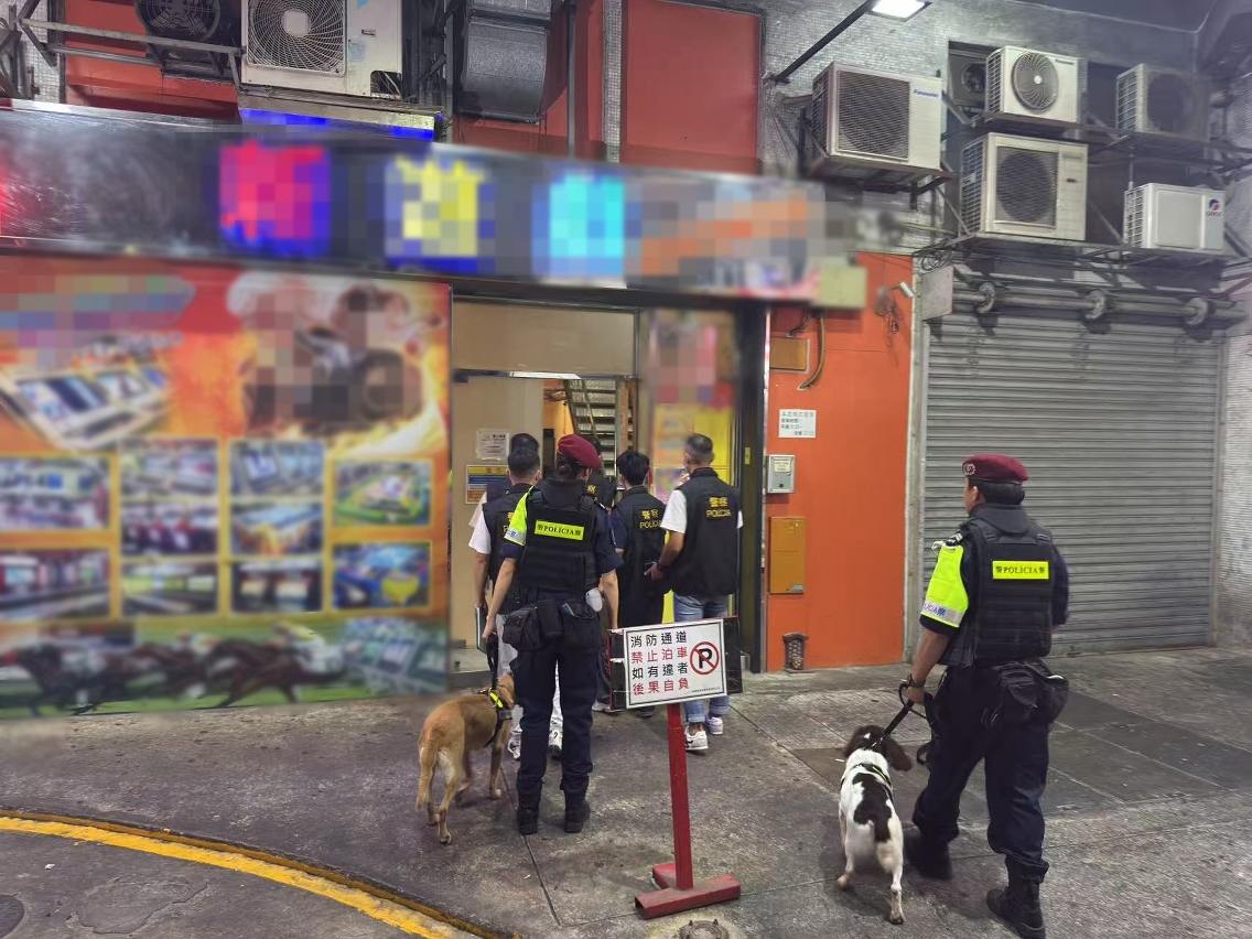 在警察總局統籌下,治安警察局於昨(10)日持續開展“雷霆2025”行動,以維護本澳良好治安環境。治安警察局轄下澳門警務廳、海島警務廳、交通廳、情報廳聯同特警隊警犬組共派出36名人員,分別巡查澳門各區多間卡拉OK、遊戲機中心、舞廳、網吧及酒吧,同時在離島區加強截查可疑人士,並進行不定點查車行動,以預防及打擊各種不法行為和犯罪活動。