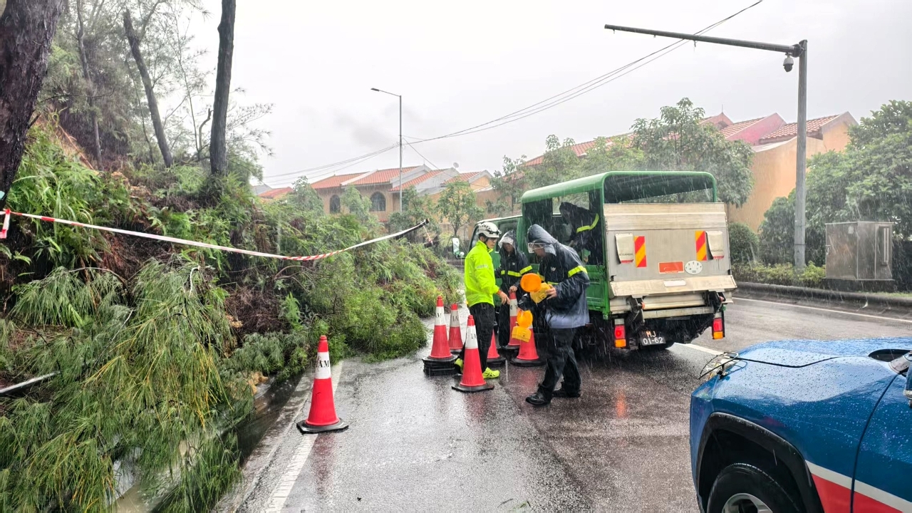 市政署已加派人手加緊清理路環馬路上的山泥和落石,加強圍封及放置危險警示提醒駕駛者,並於暫停開放的山林郊遊徑入口處張貼告示,呼籲市民避免在風雨期間或其後數日內進入山坡林區及在樹下逗留,以免發生意外。
