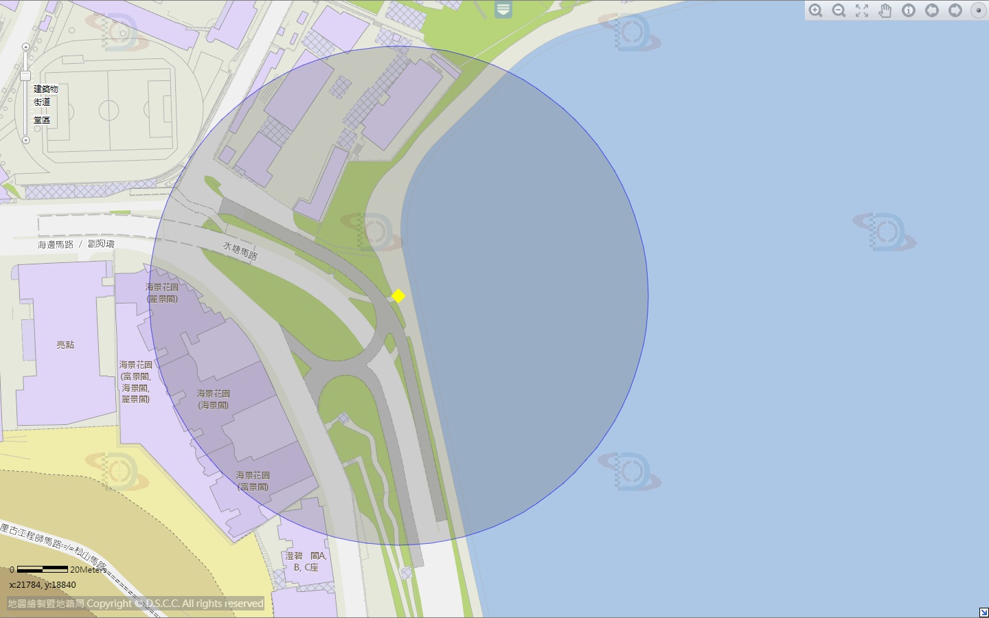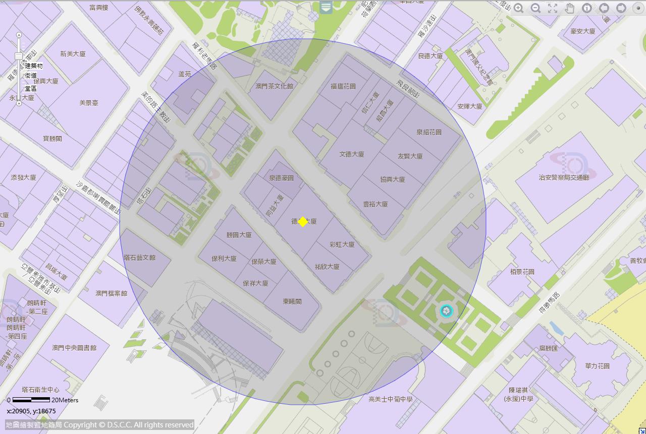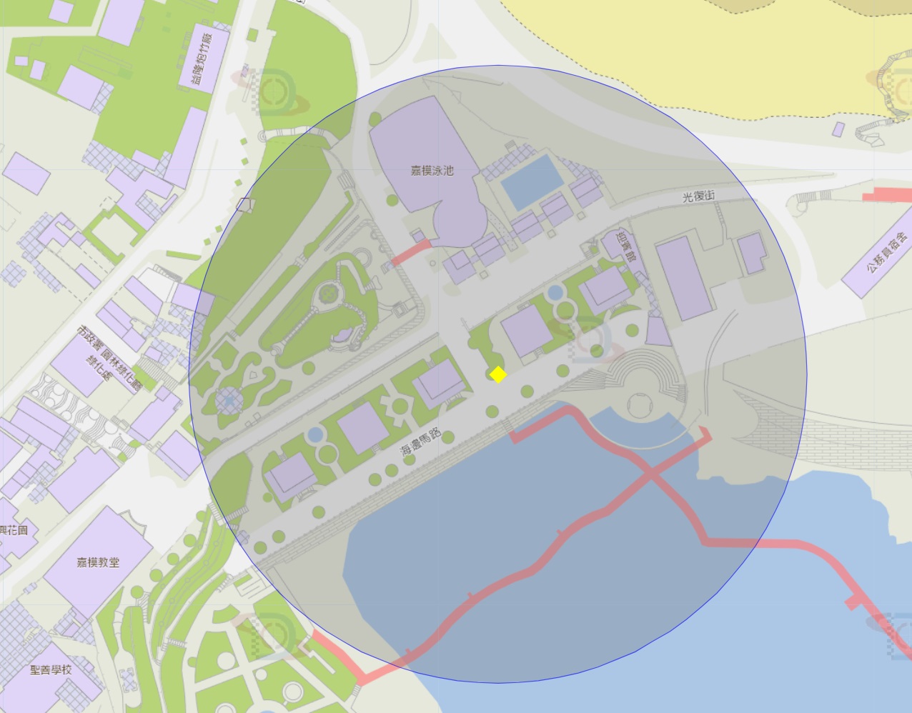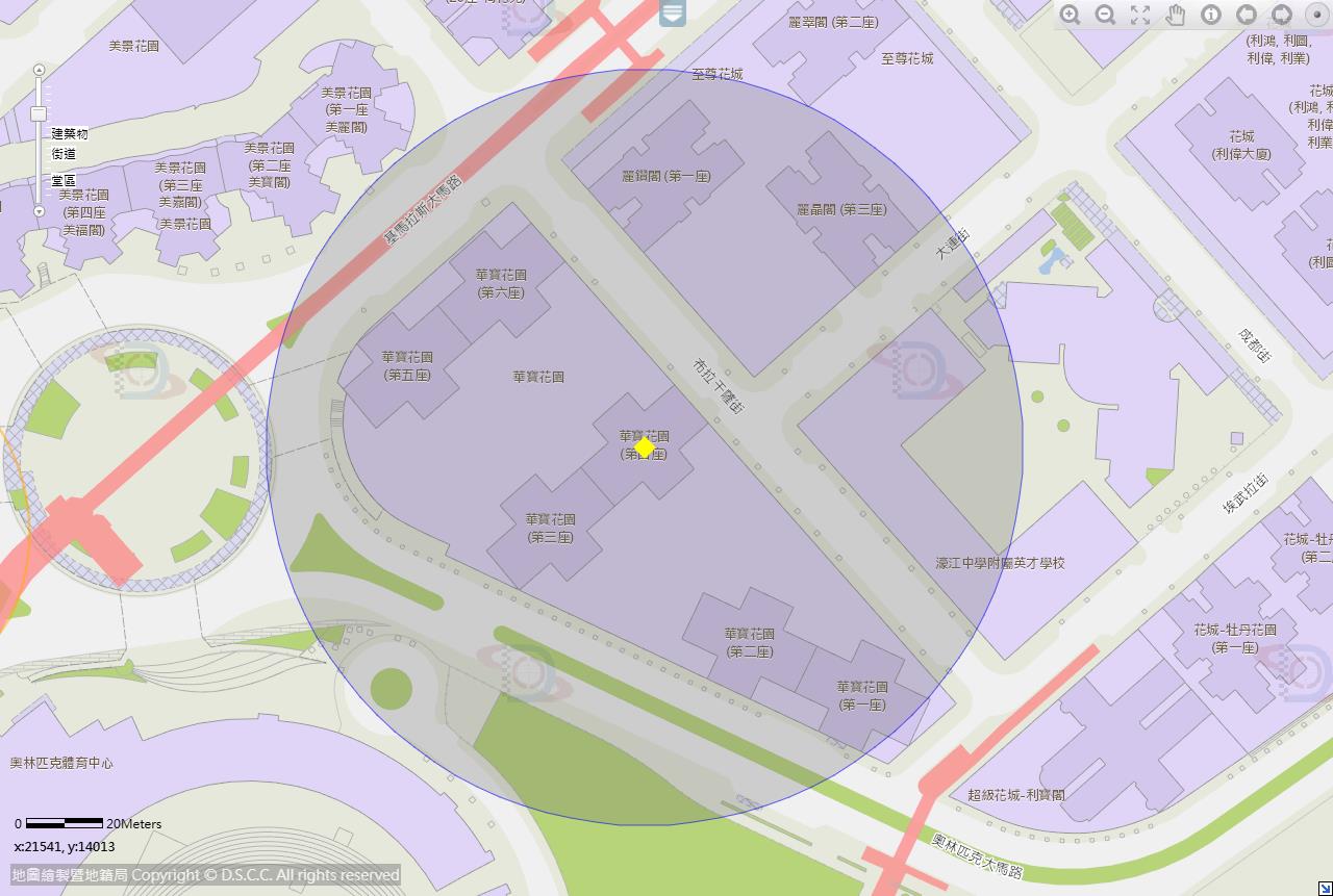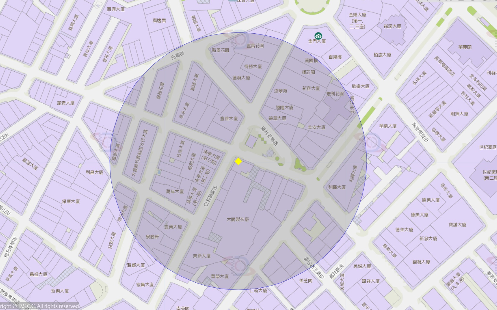 • 美的路主教街德昌大廈附近風險區域100米半徑範圍