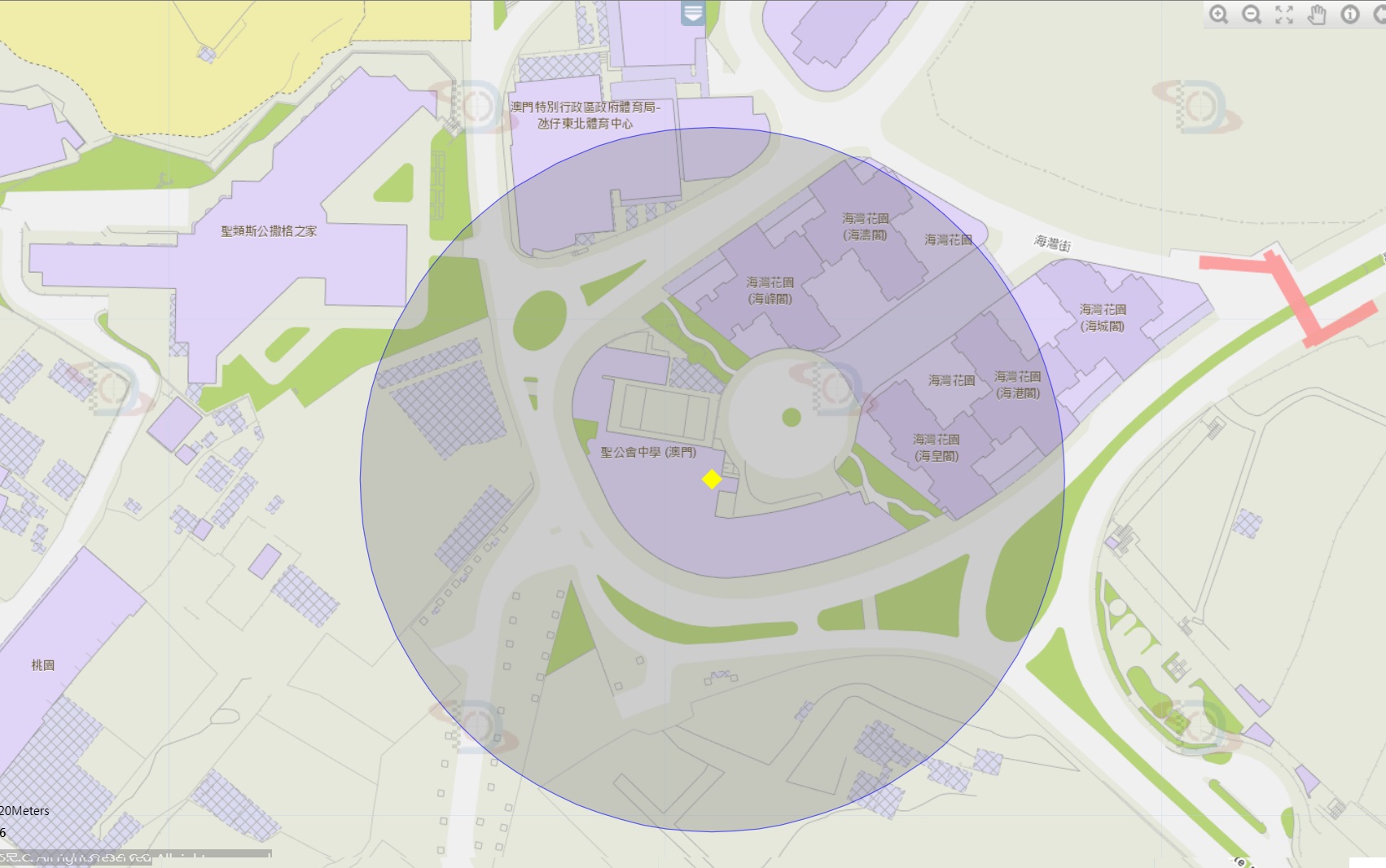 • 氹仔聖公會中學附近風險區域100米半徑範圍