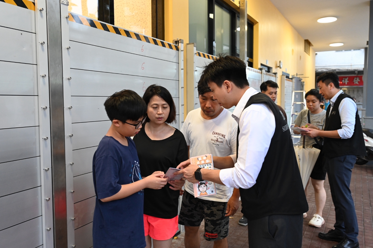 根據地球物理氣象局資料,隨著熱帶風暴「塔巴」逐漸逼近本澳,本澳今(7日)晚上9時將發出8號風球訊號,且可能出現水浸。民防行動中心於今早分別組織消防局和澳門保安部隊高等學校,聯同民防志願者前往關閘台山一帶和橫琴口岸,派發宣傳單張,向市民旅客講解本澳颱風措施。隨後於下午,到下環、康公廟、水上街市等易受水浸影響的地區,加強向商戶市民宣傳防風防水浸等應急避險的防範工作及疏散撤離的注意事項。