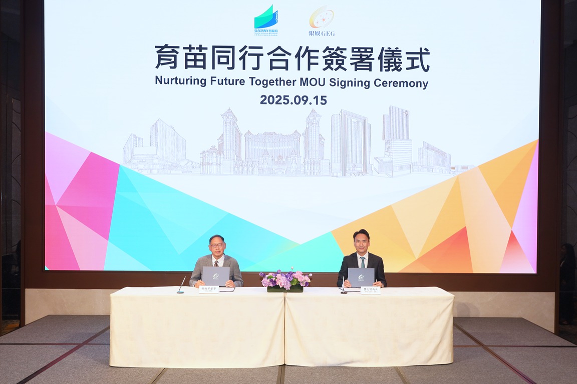 教青局局長龔志明和銀河娛樂集團董事程裕昇於2025年9月15日簽署“育苗同行”合作意向書,透過企業積極推動親職教育工作,協助開展各類家長教育及親子教育活動,讓其員工認識教養子女的技巧,加強對家庭教育的重視,提升家庭幸福感。